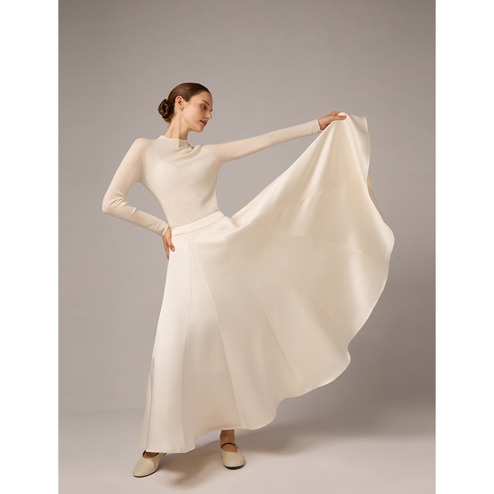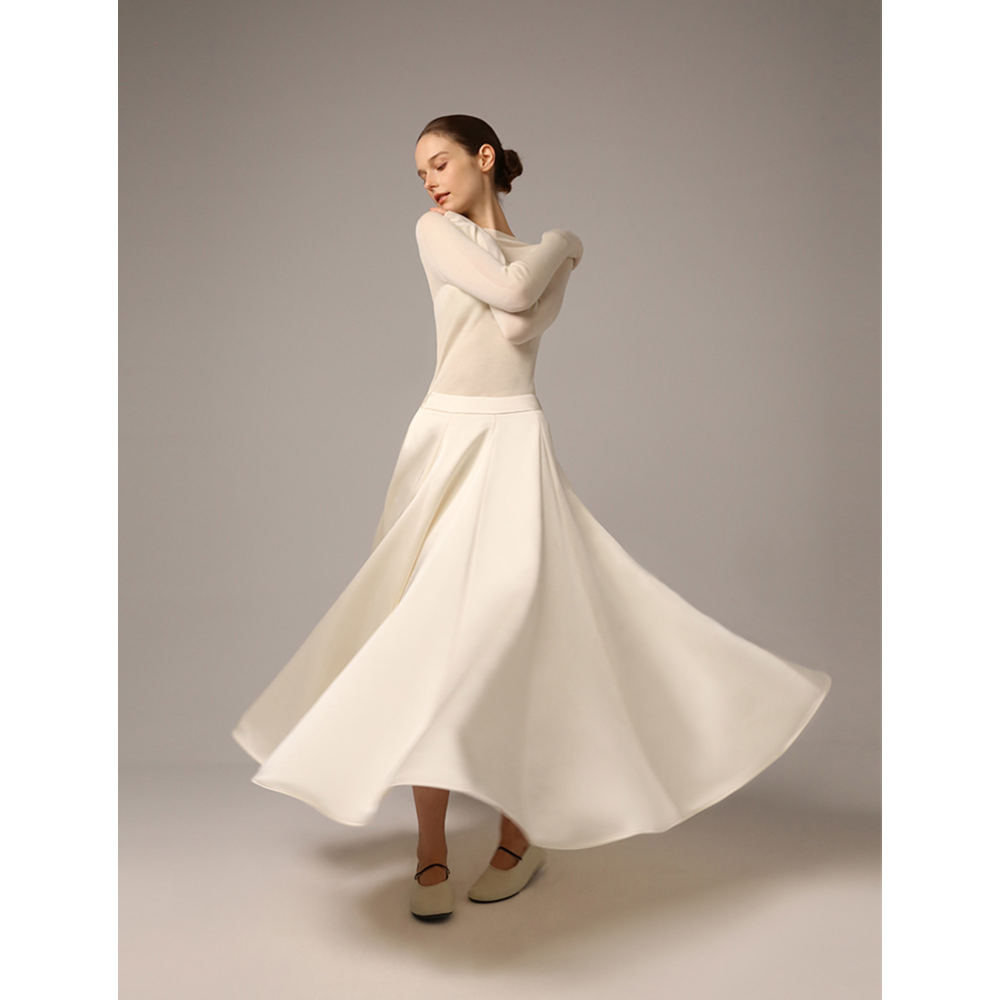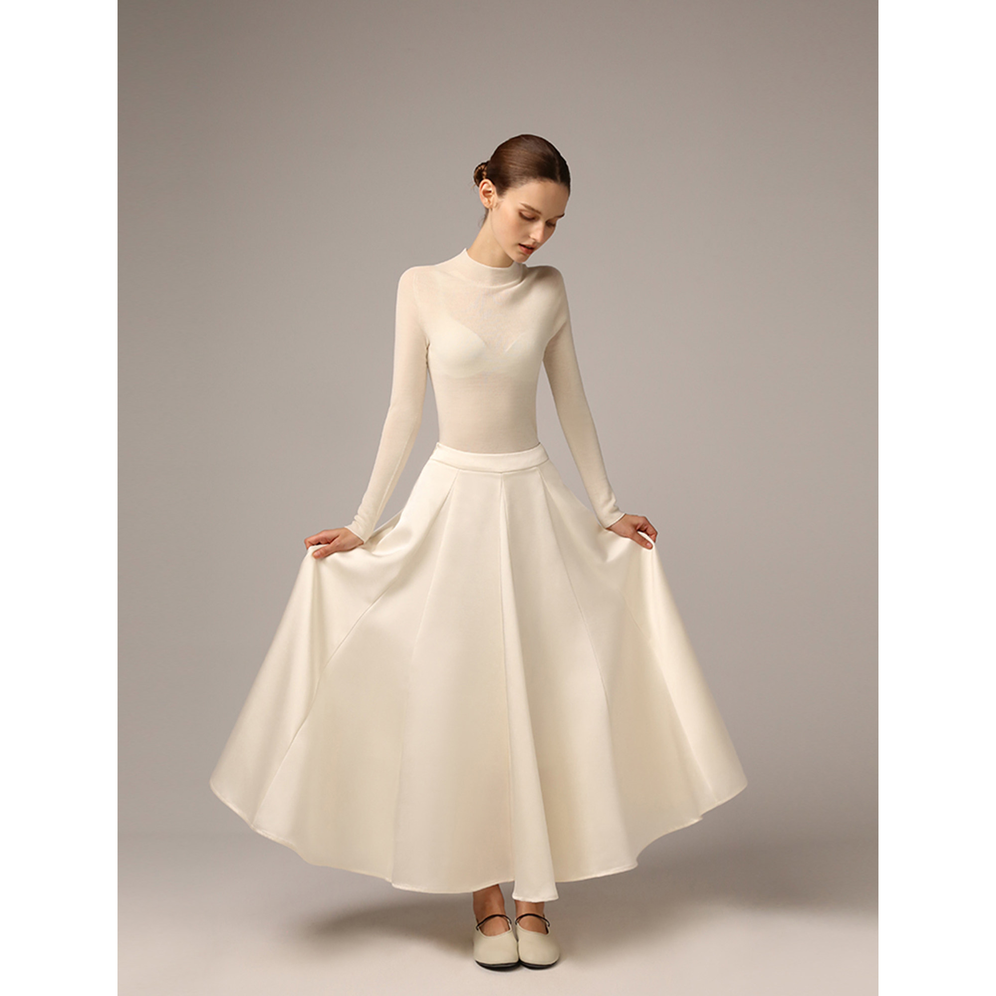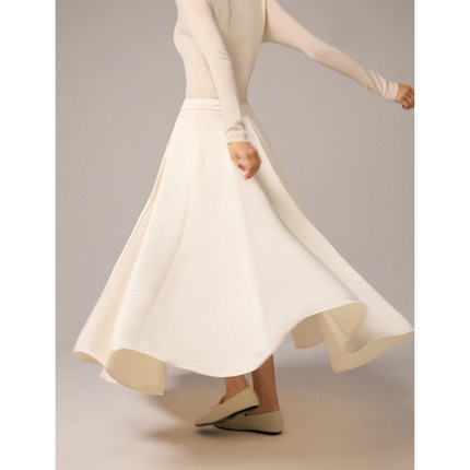 SO 秋冬双面缎珍珠白加绒牛奶丝内衬伞形裙摆垂感鱼尾半裙