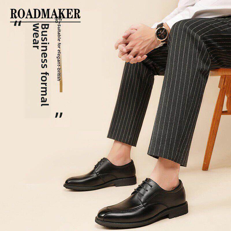 罗美克皮鞋男士真皮冬季丝绒商务正装大码内增高除臭剂婚礼新郎鞋