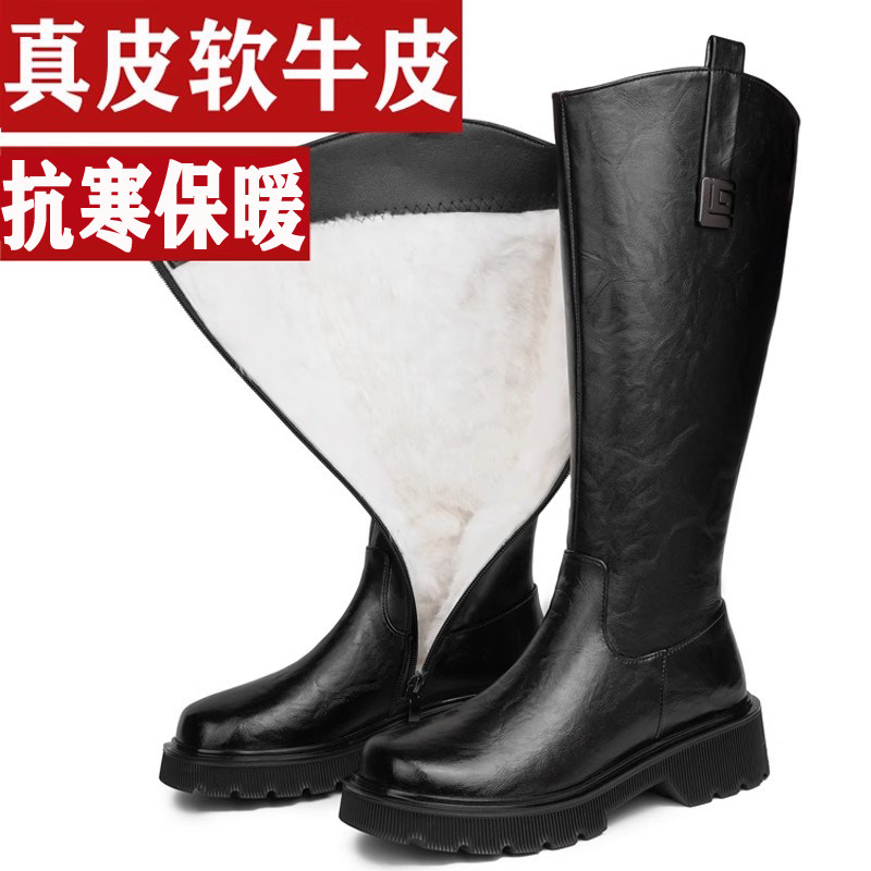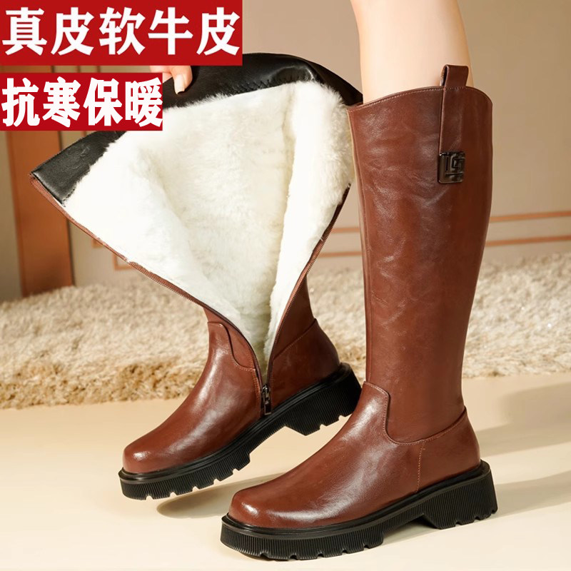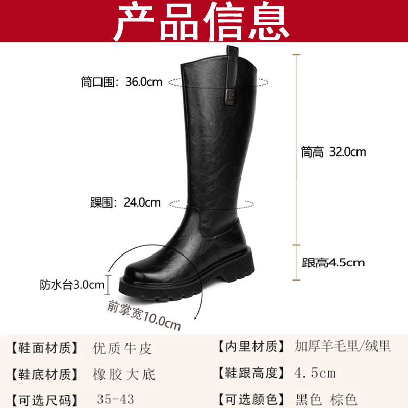 厚底不过膝长筒靴女平跟高筒靴显瘦女靴子皮毛一体马丁靴女款长靴