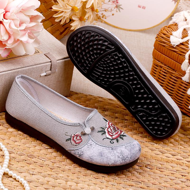 春夏季绣花鞋圆头透气平底妈妈鞋