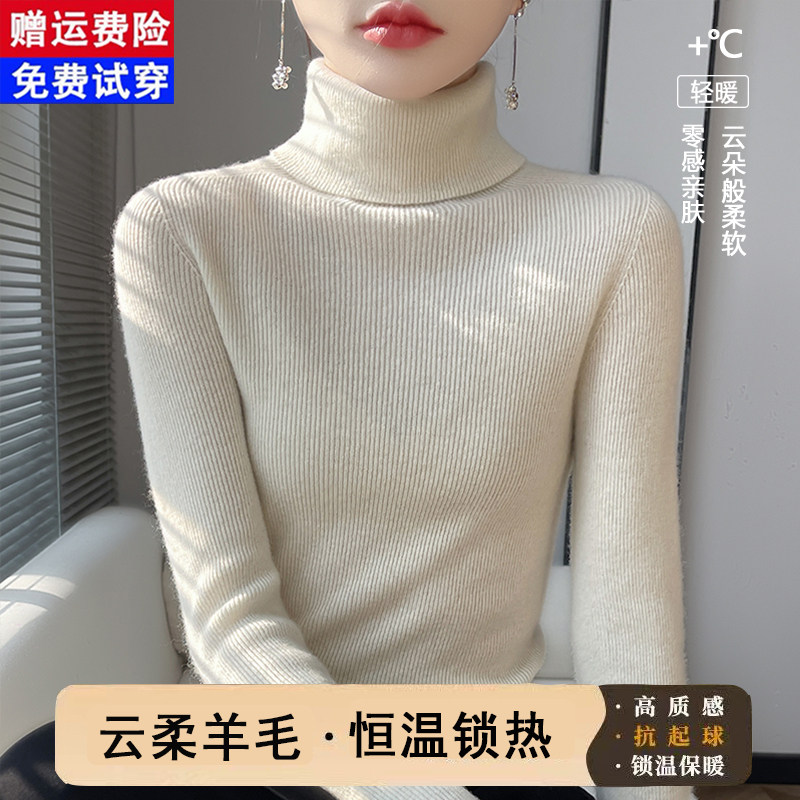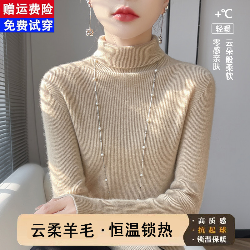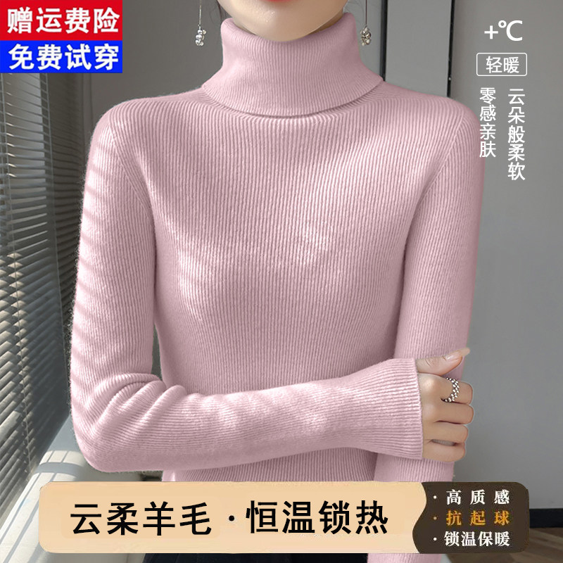 鄂尔多斯市加厚高领2025秋冬羊绒衫女修身毛衣内搭羊毛针织打底衫