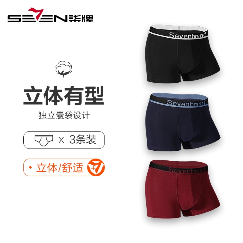 柒牌男士纯棉内裤男抗菌透气舒适四角裤中腰青年平角短裤