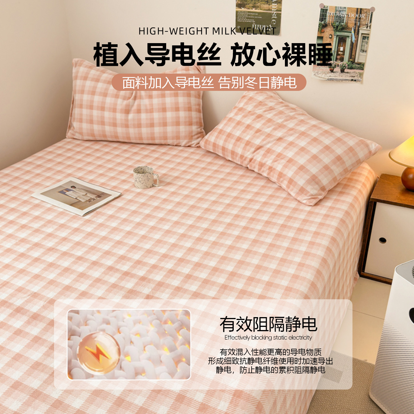 a类防静电牛奶绒床单单件