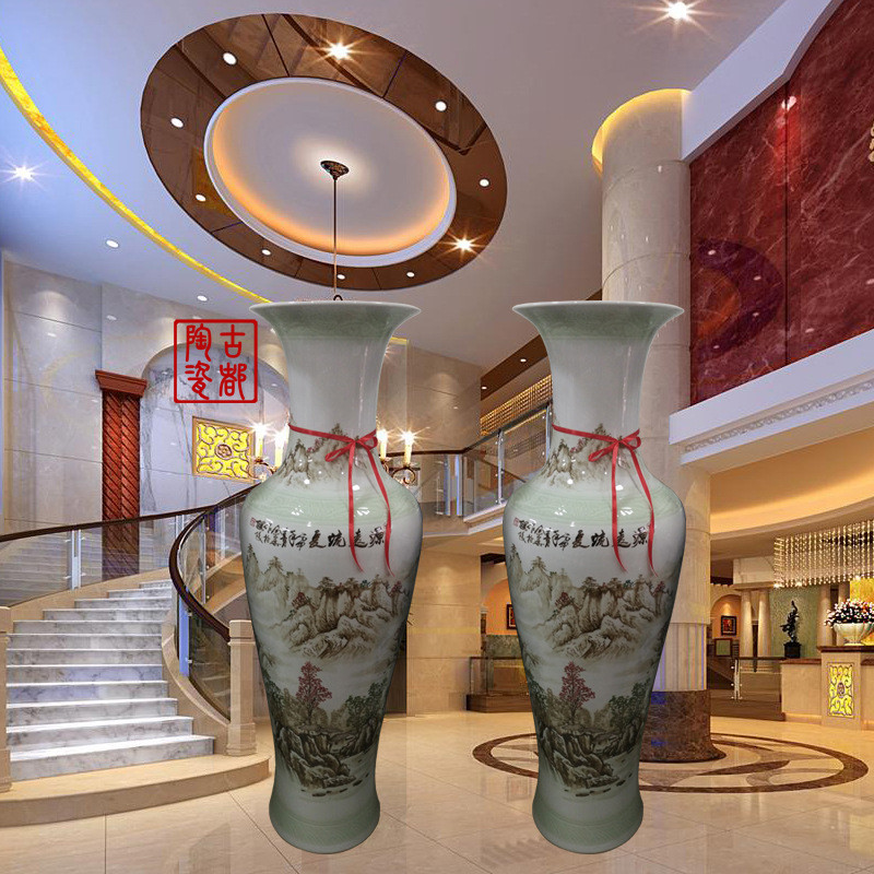 陶瓷手绘落地大花瓶酒店客厅摆件软装现代简约1.2花瓶
