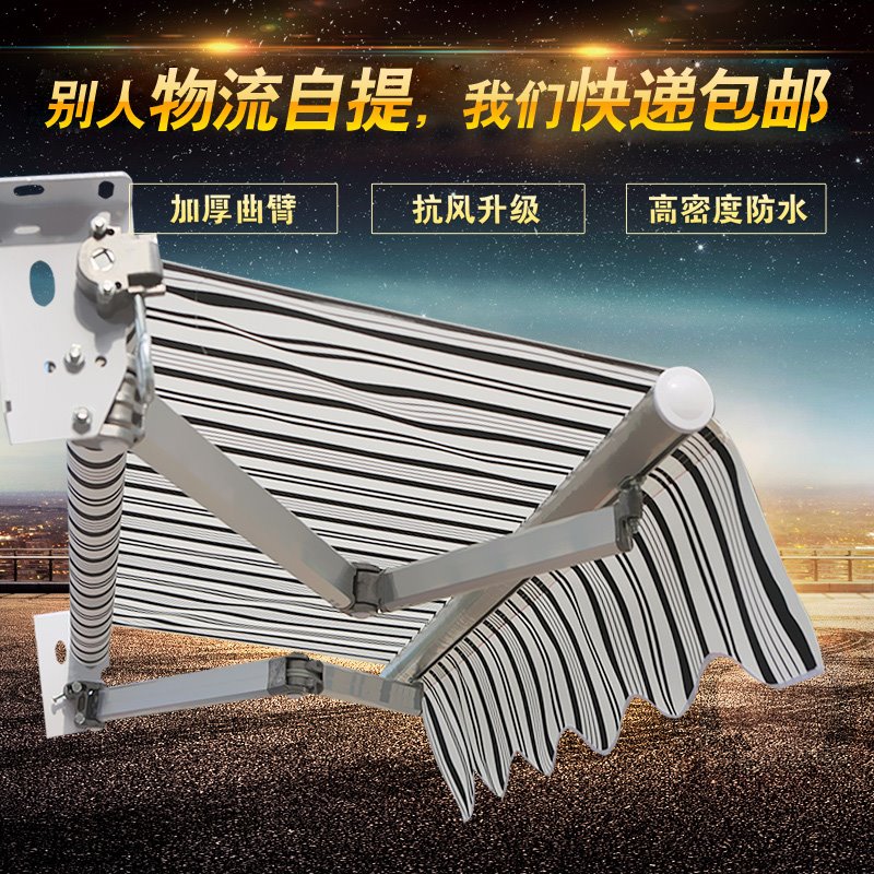 极速实用户外遮阳棚折叠伸缩雨棚B加粗阳台铝合金商铺帐篷手摇停