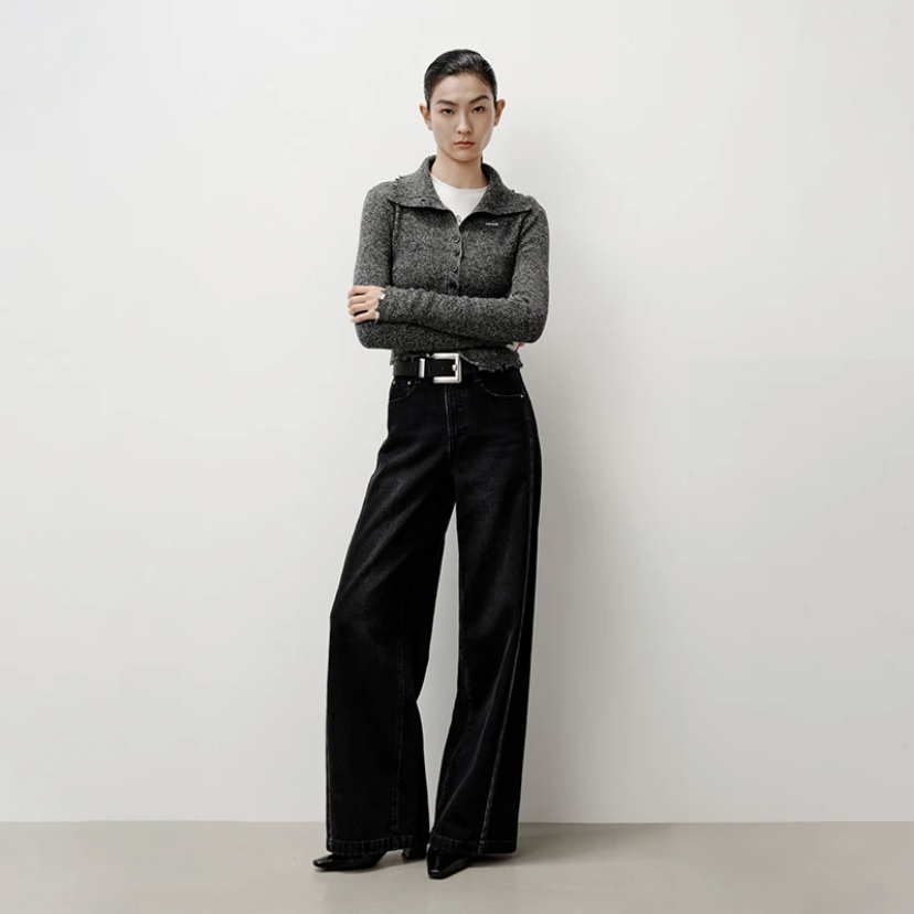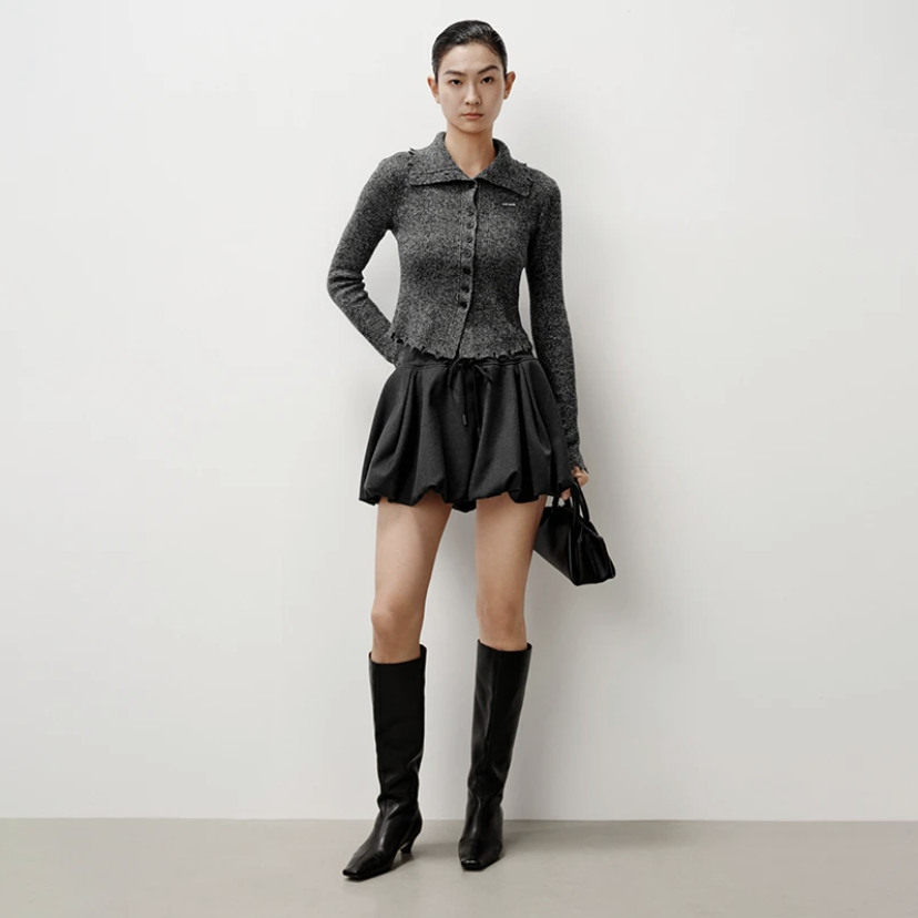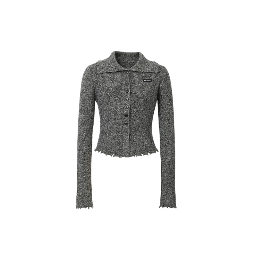艾诺丝尚忆2025秋季高领短款单排扣休闲针织衫开衫毛衣女804171
