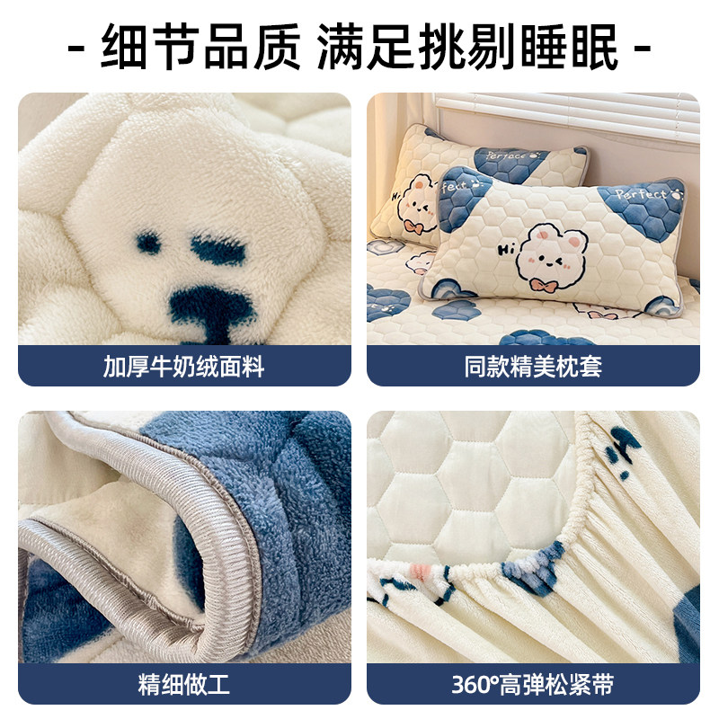 加厚牛奶绒床笠单件冬季床罩套全包床单床垫保护套防滑固定三件套