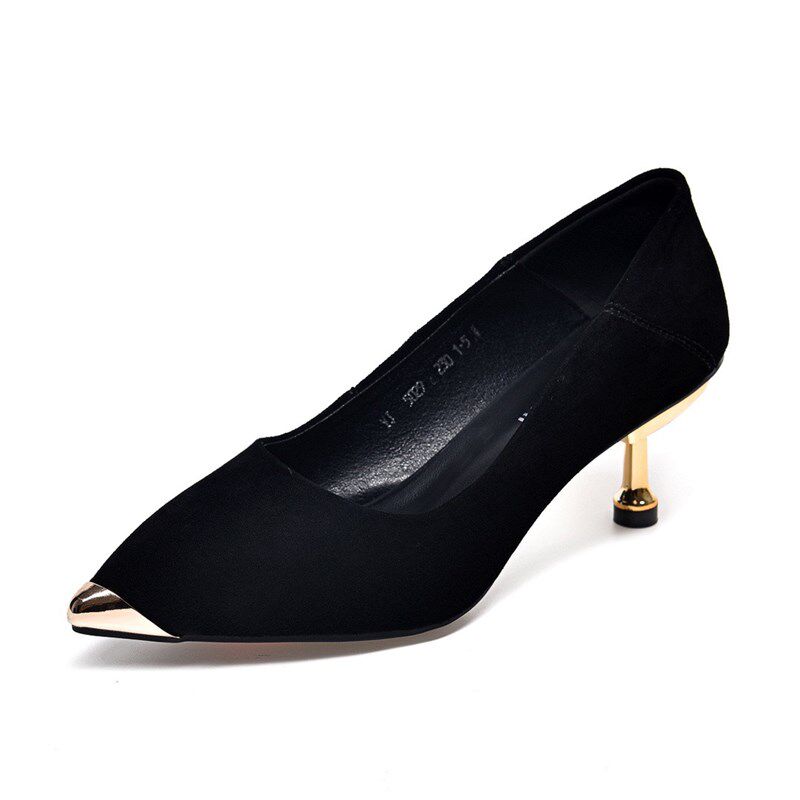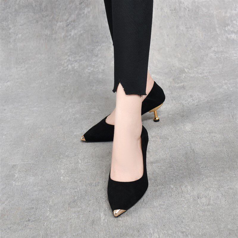 尖头单鞋女细跟2023春季新款磨砂皮鞋女鞋浅口中跟真皮软皮高跟鞋