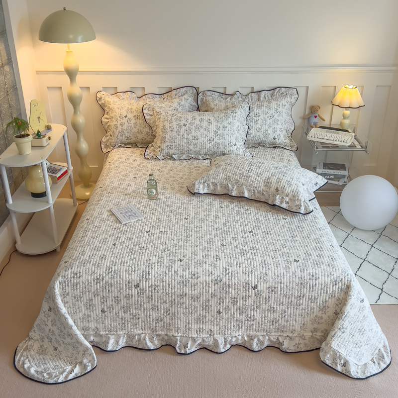 新款亲肤韩版针织棉花边床盖