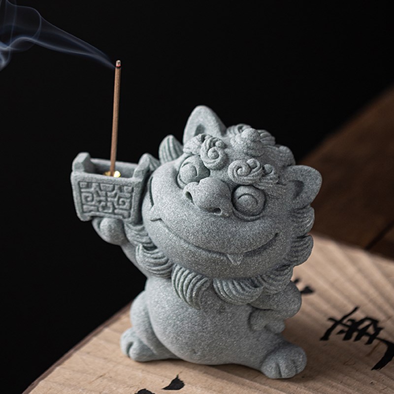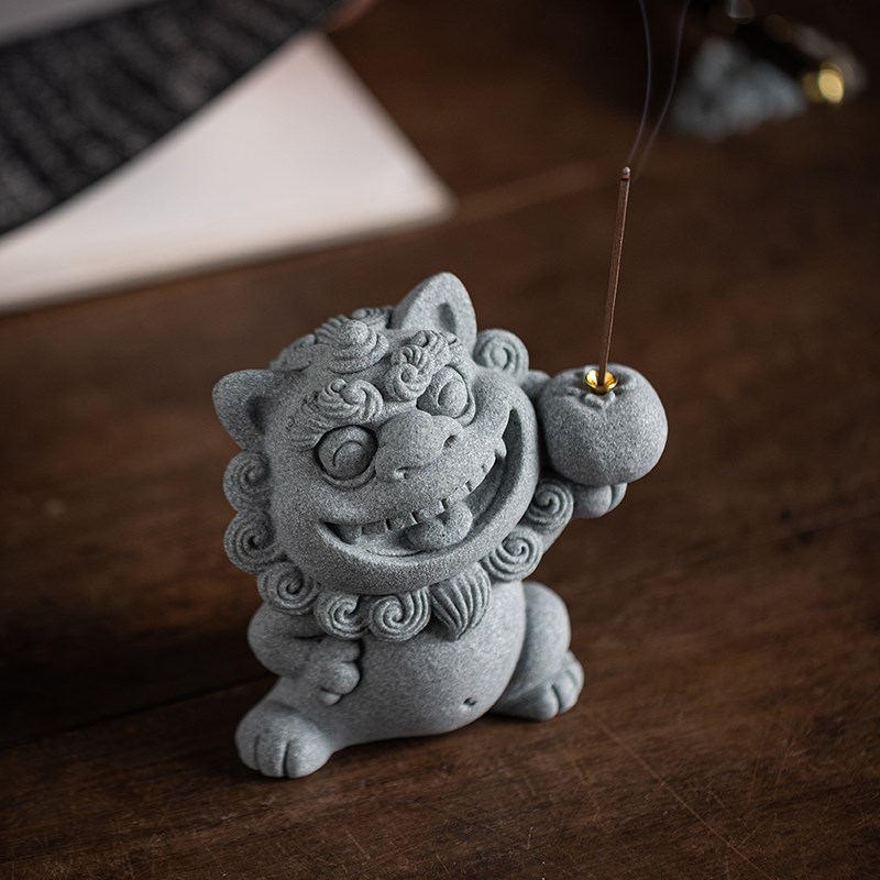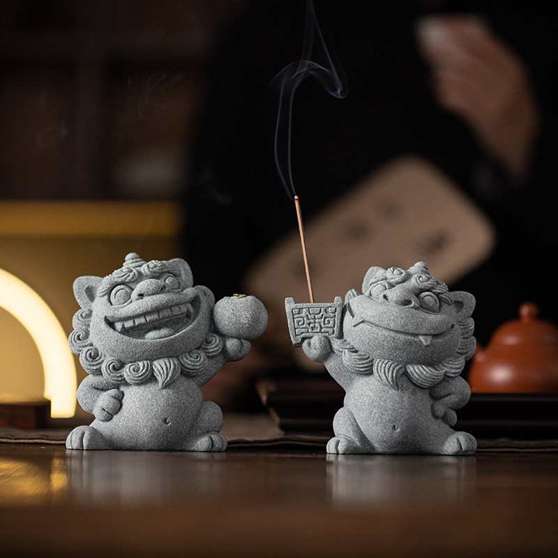 中式招财风狮爷香薰炉香插茶宠摆件创意举柿无双石狮子桌面装饰品