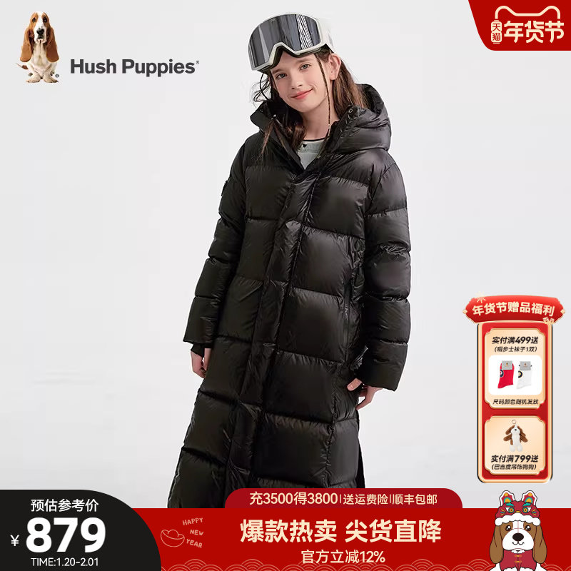 暇步士童装儿童加长款三防羽绒服冬装新款男大童保暖女童加厚外套