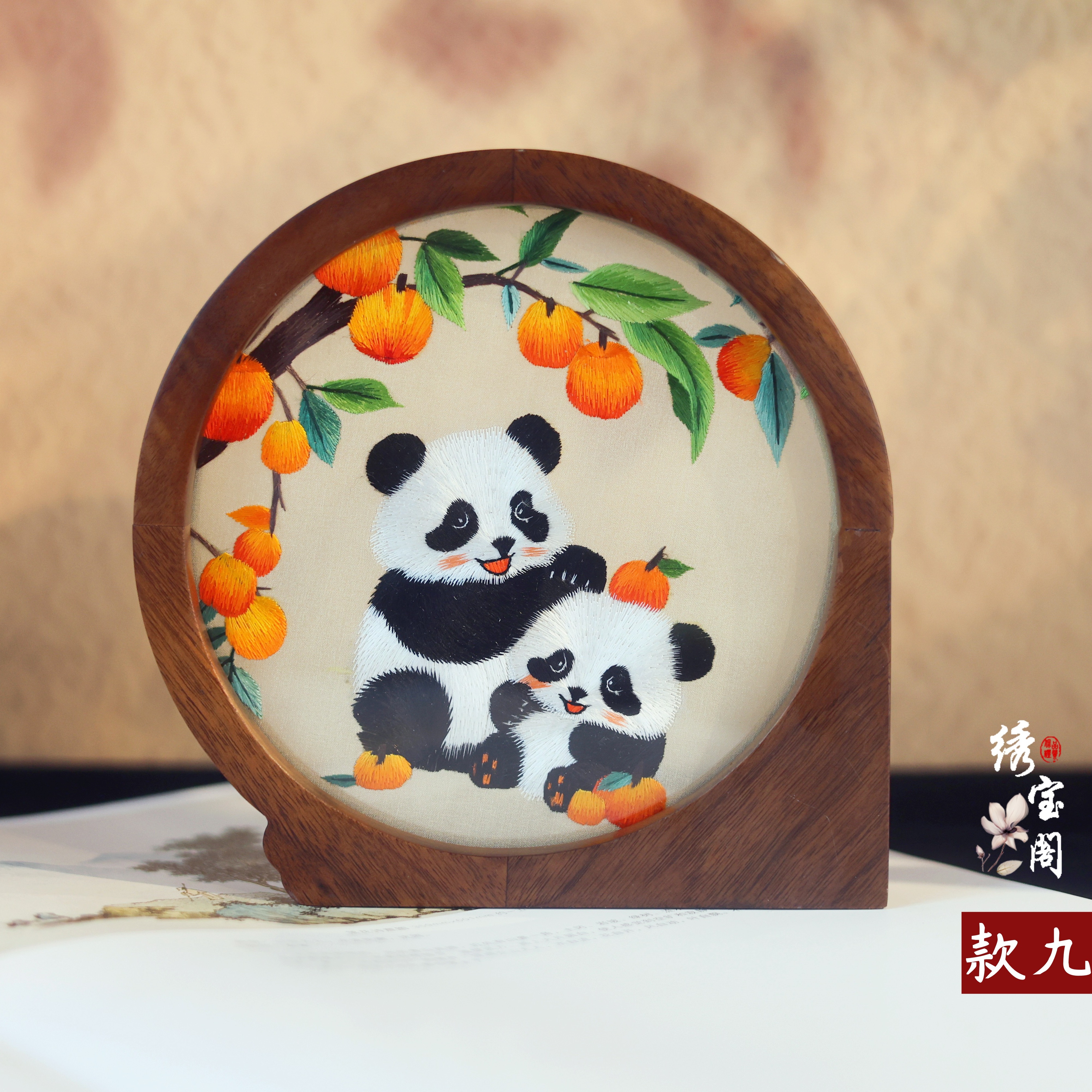 中国特色苏绣胡桃木刺绣摆件苏州双面绣桌面摆台 纯手工非遗礼品