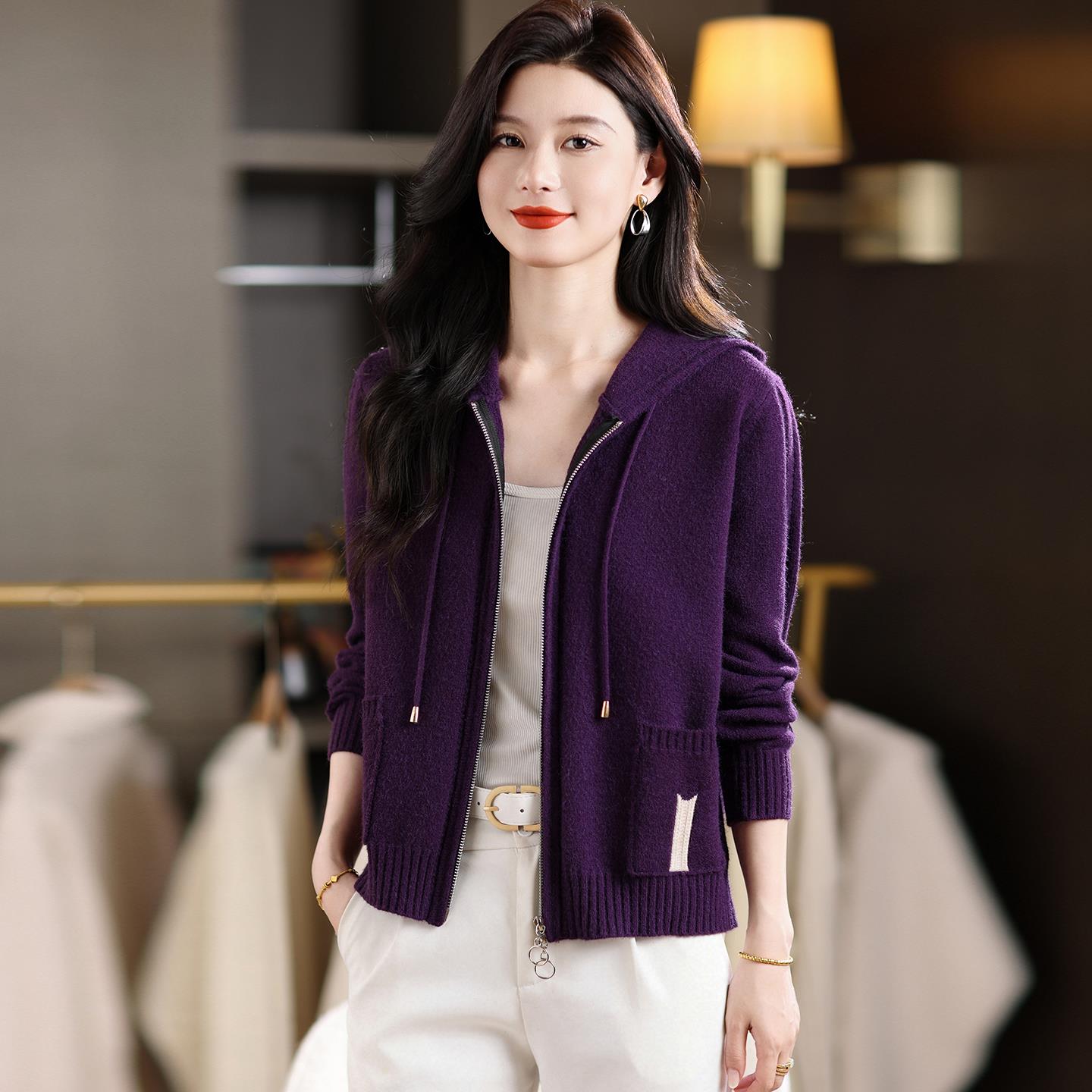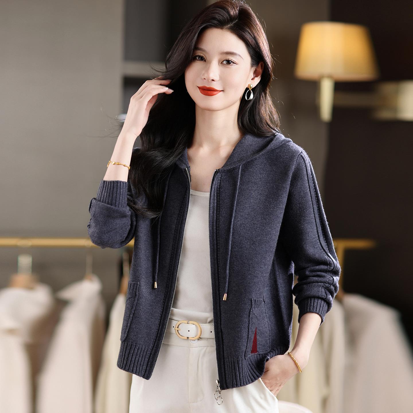 小个子短款毛衣外套女装春秋季2025新款爆款外搭上衣连帽针织开衫