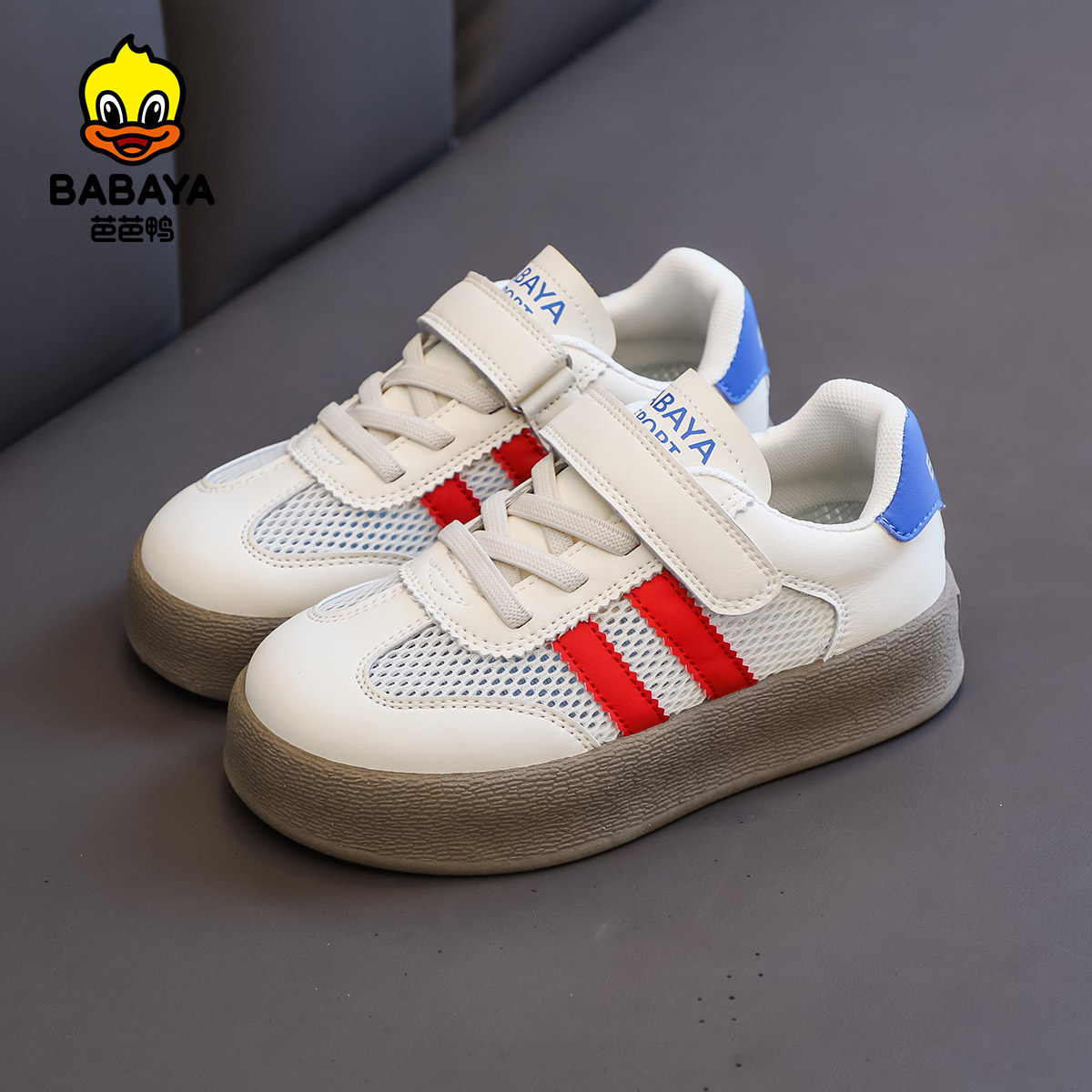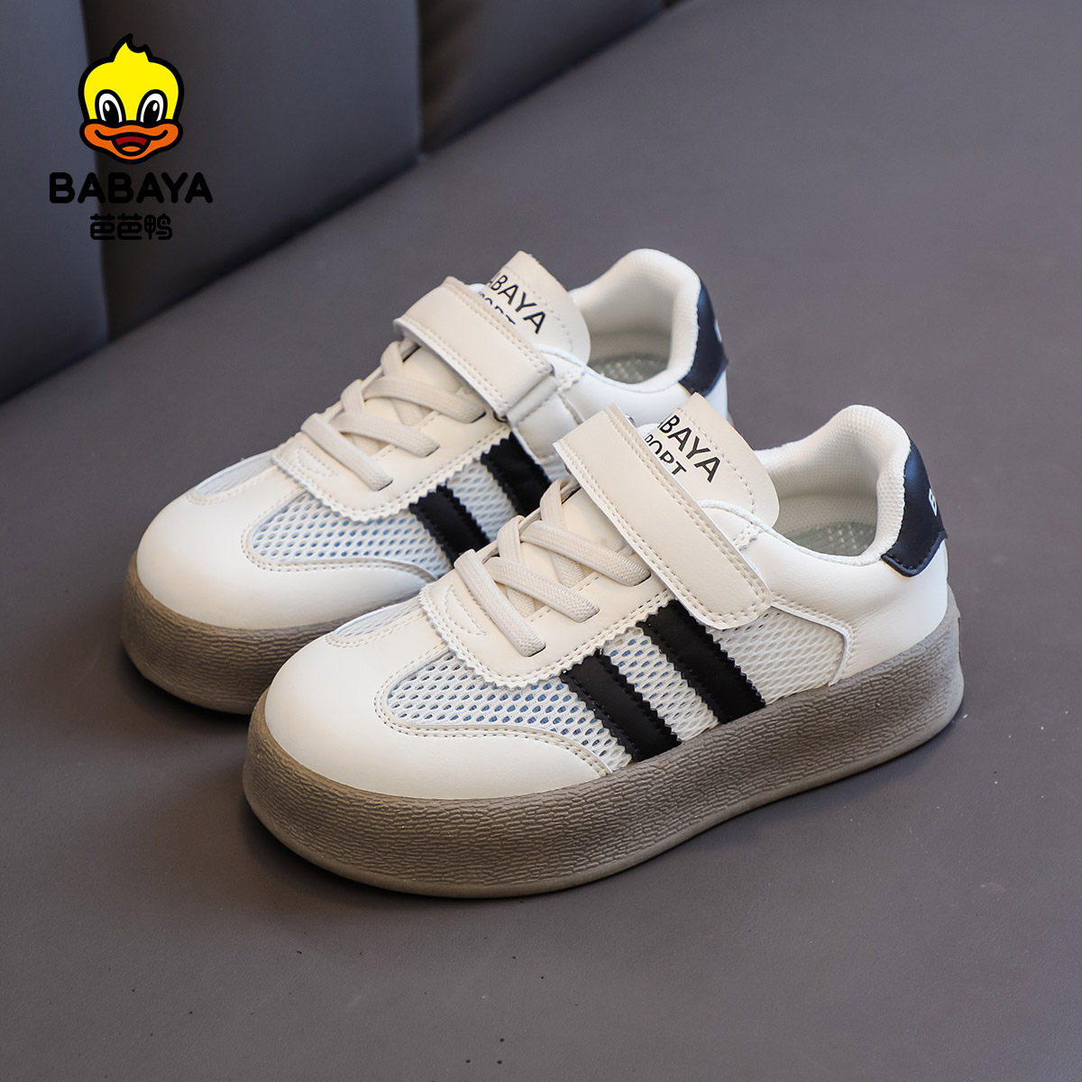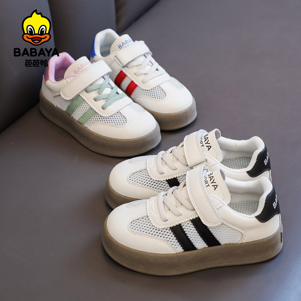 芭芭鸭德训鞋新款夏季板鞋男童单网鞋子网面透气女童运动板鞋