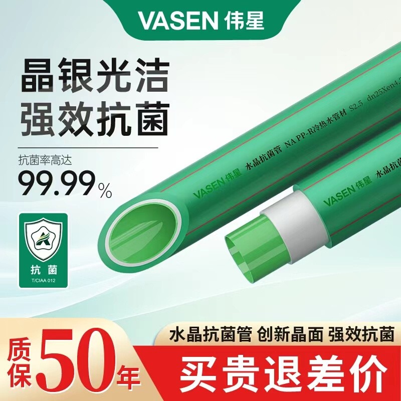 VASEN伟星PPR水晶抗菌管正品家用4分6分冷热水管热熔头自来水管
