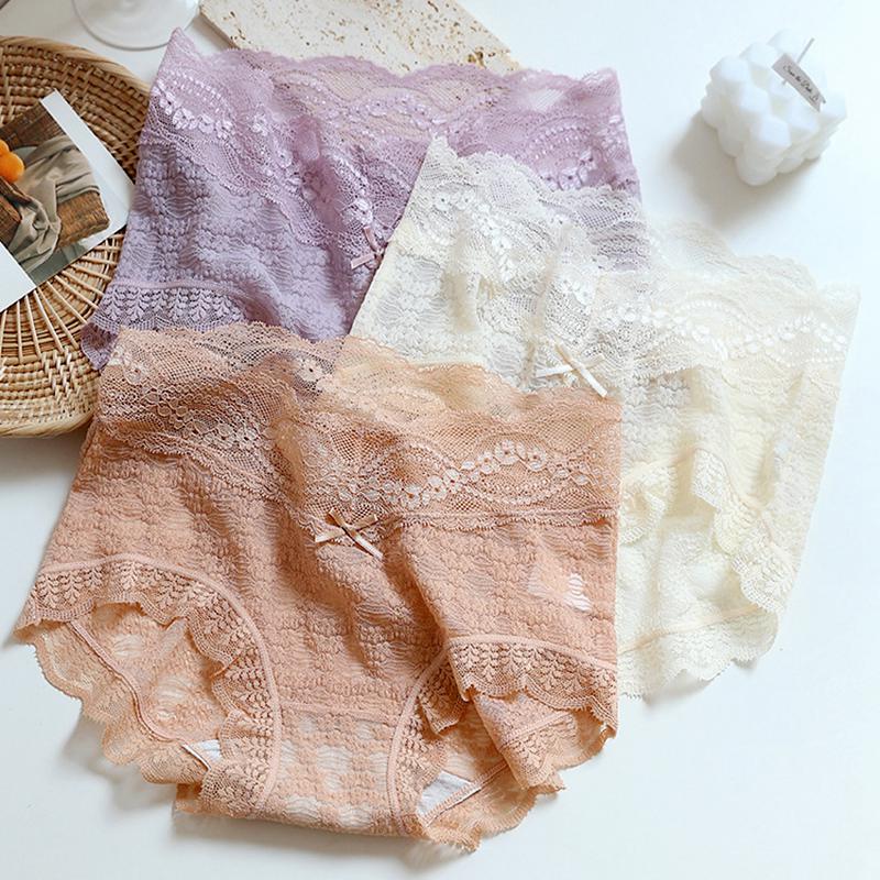 内裤女士蕾丝面料性感纯棉裆无痕大码超弹中腰内裤三角蝴蝶结新款