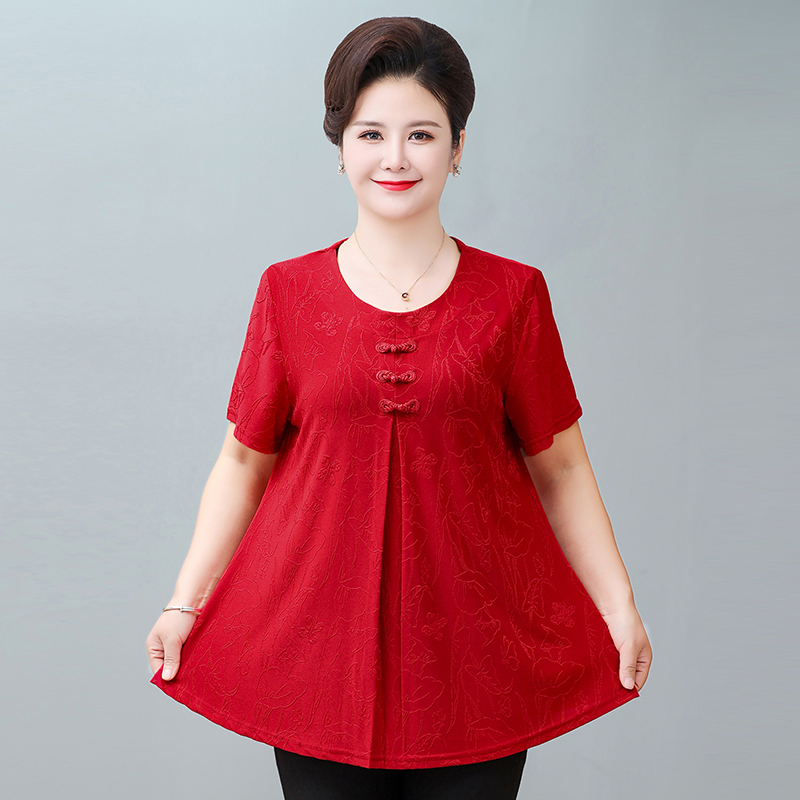 2025新款胖妈妈夏装短袖t恤加肥加大码中老年人女薄款宽松上衣服