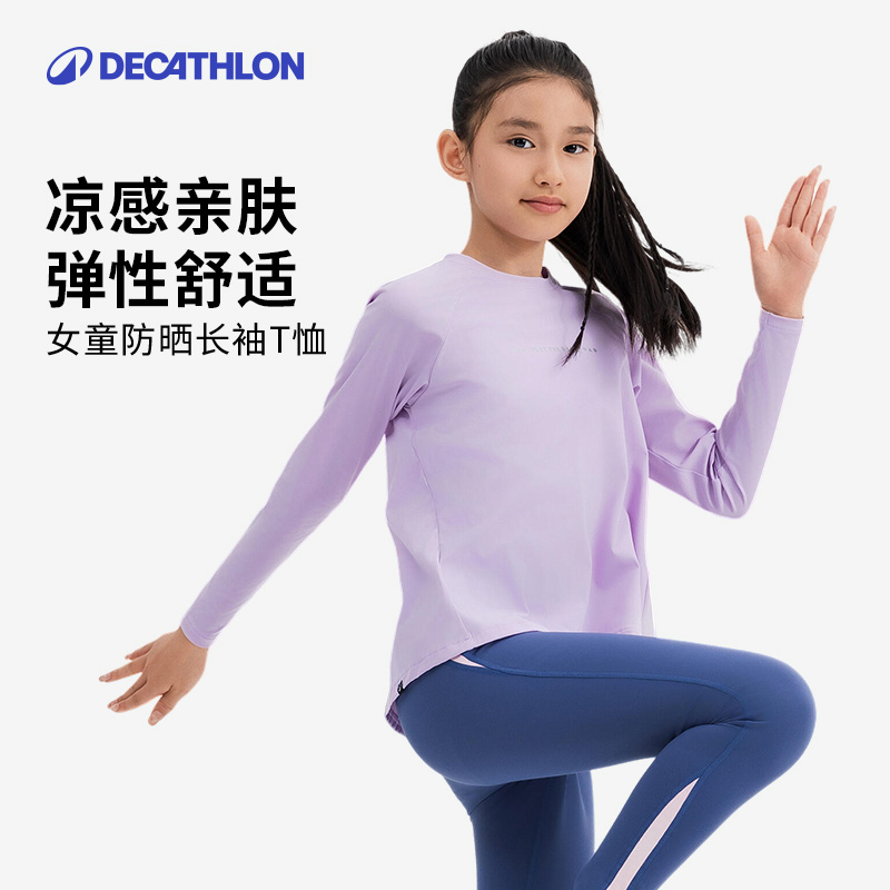迪卡侬儿童长袖运动T恤女童防晒防紫外线透气速干衣春夏凉感KIDC