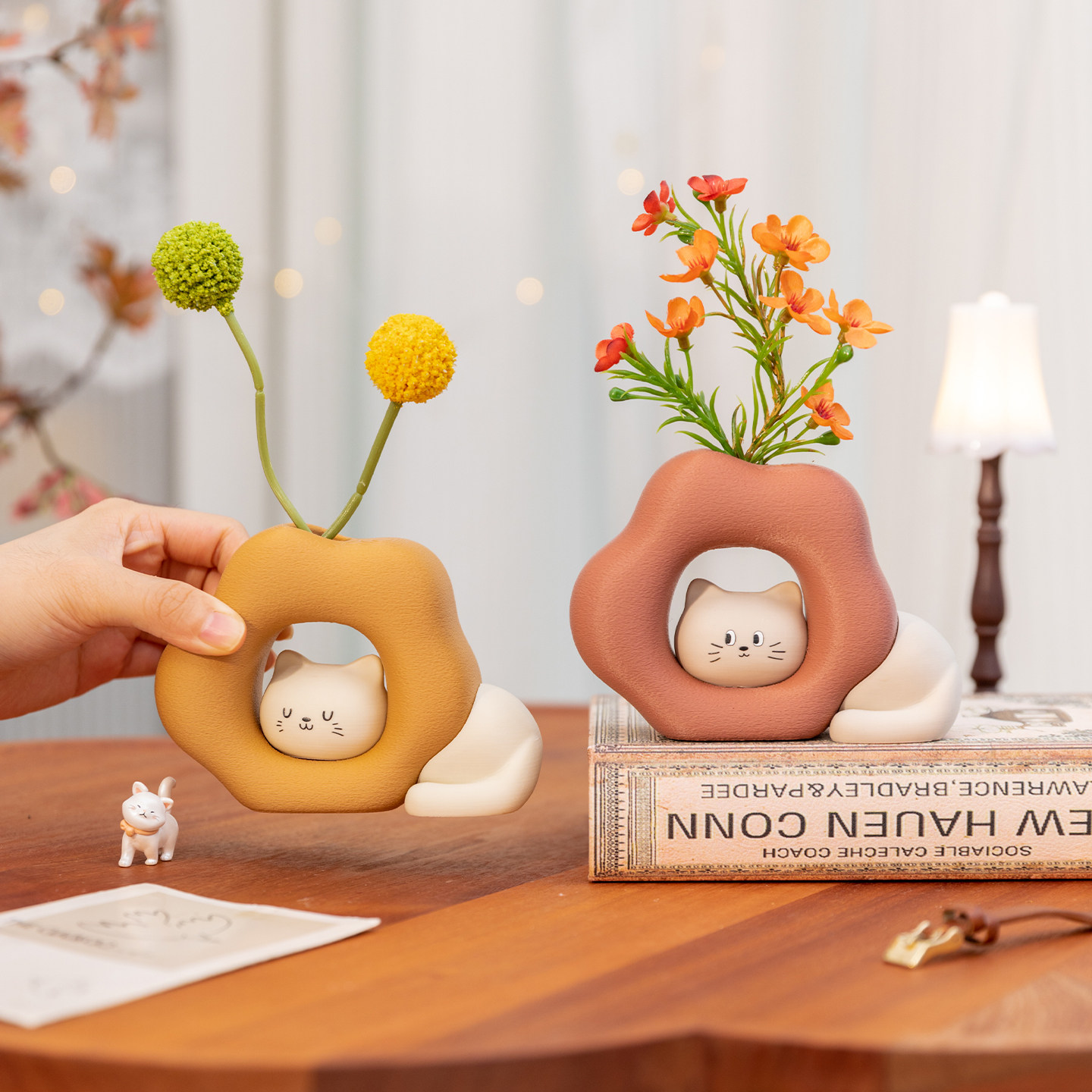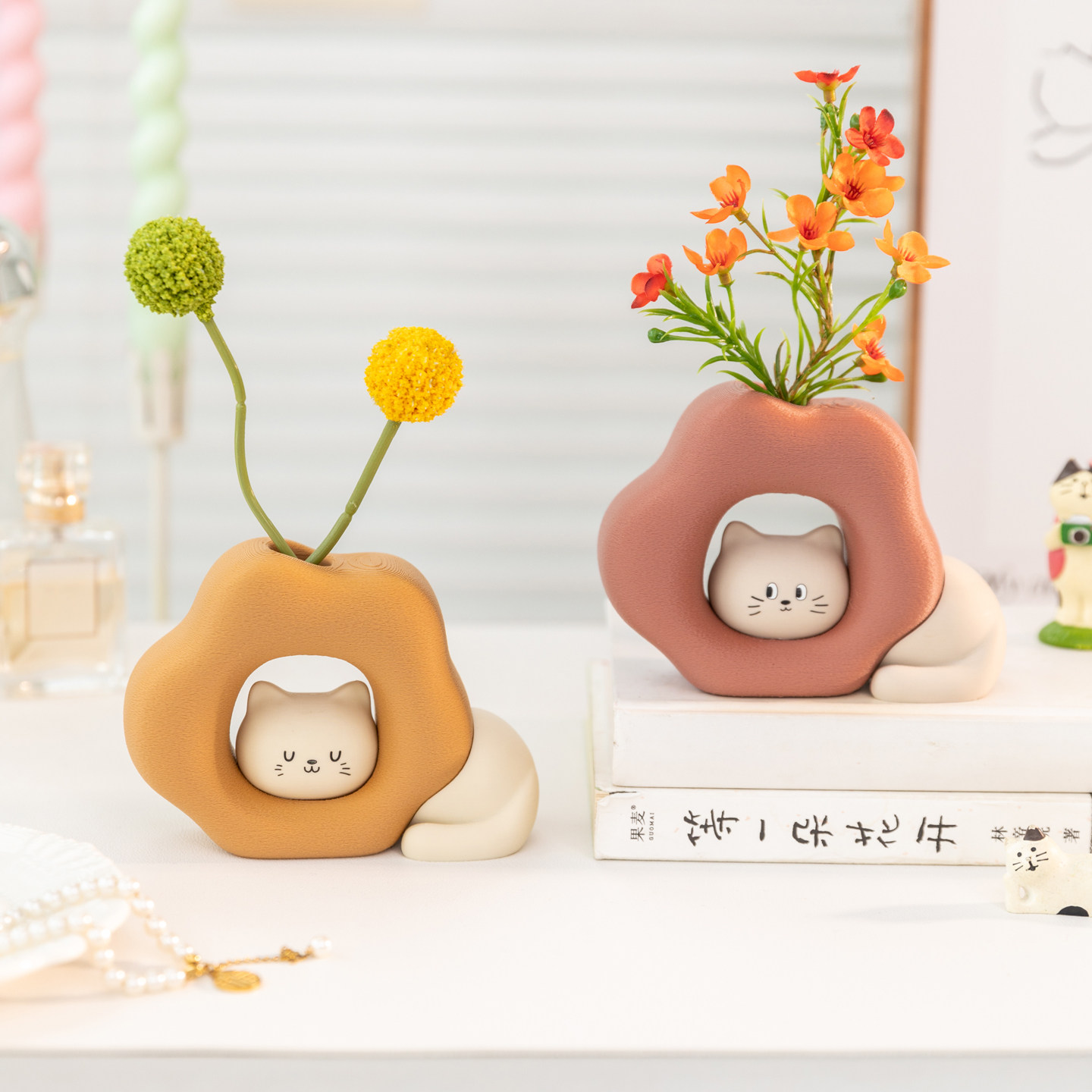 阿楹 可爱治愈艺术小猫摆件花工位卧室玄关电视柜书架洞洞板装饰