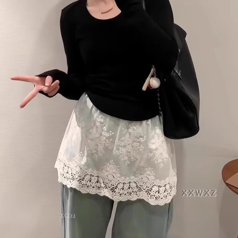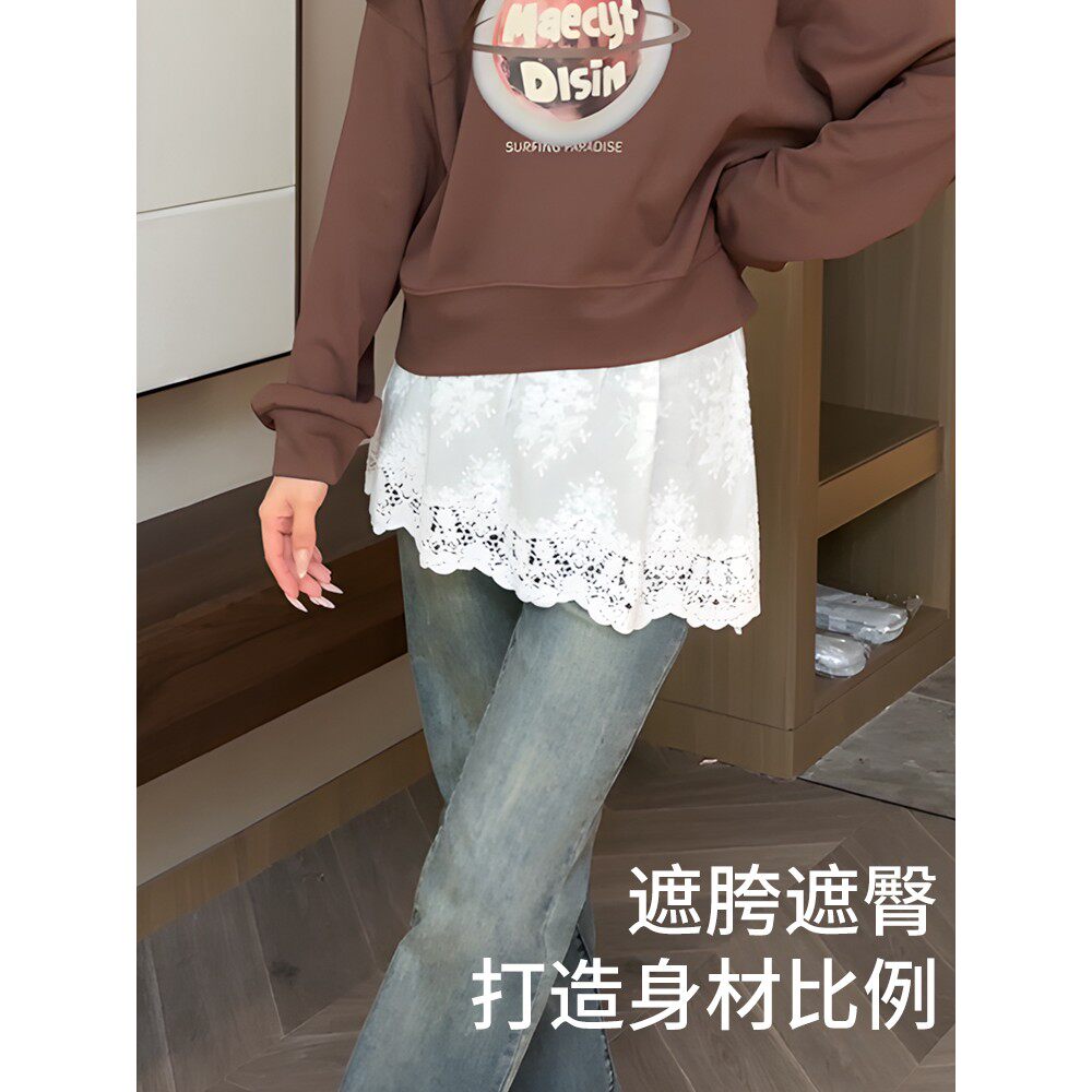 自带氛围感!秋冬蕾丝纯棉屁帘鲨鱼裤遮胯2025新款叠穿打底半身裙