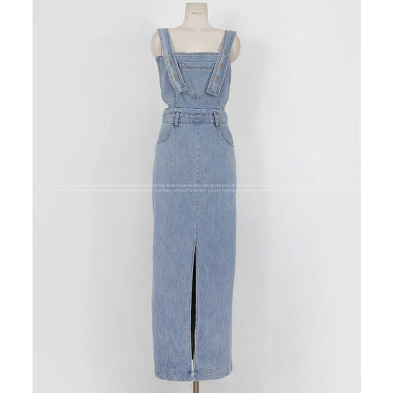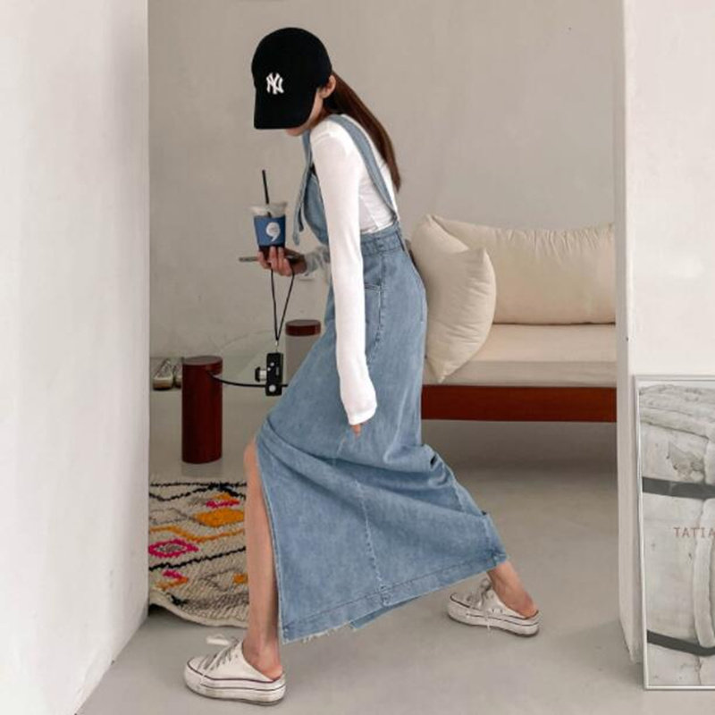 春夏季新款通勤牛仔连衣裙中长款吊带裙子背带修身包臀裙性感显瘦