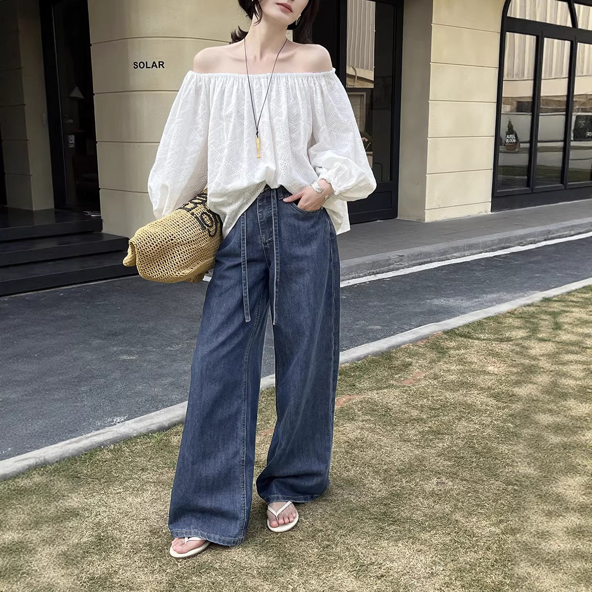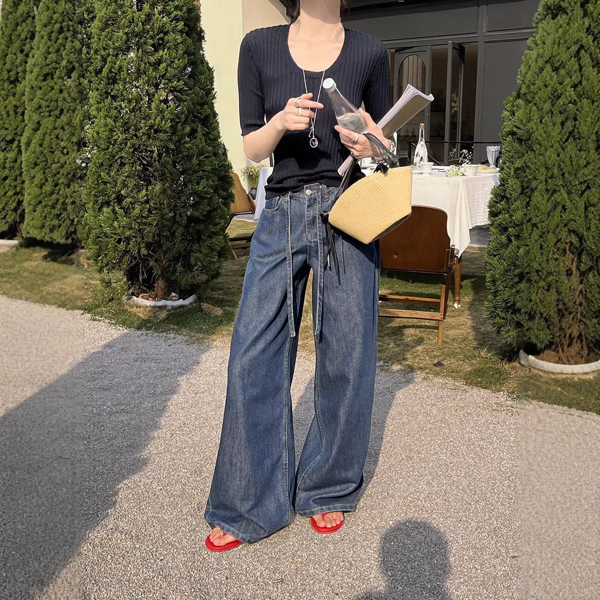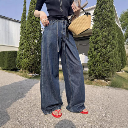 早春上新复古简约天丝廓形慵懒阔腿牛仔裤女NB9135