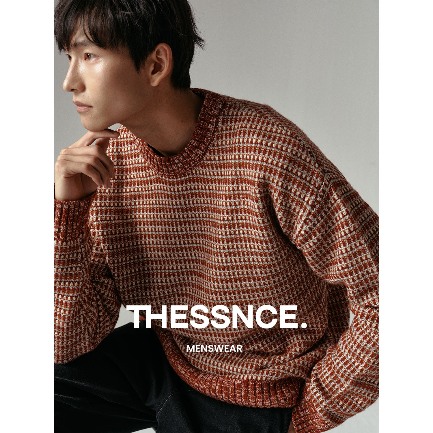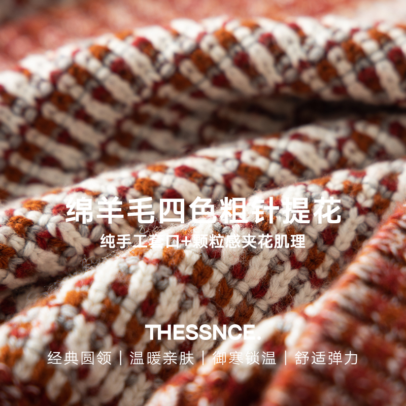 THESSNCE 费尔岛四色粗针提花肌理 绵羊毛衫圆领套头针织衫男秋冬
