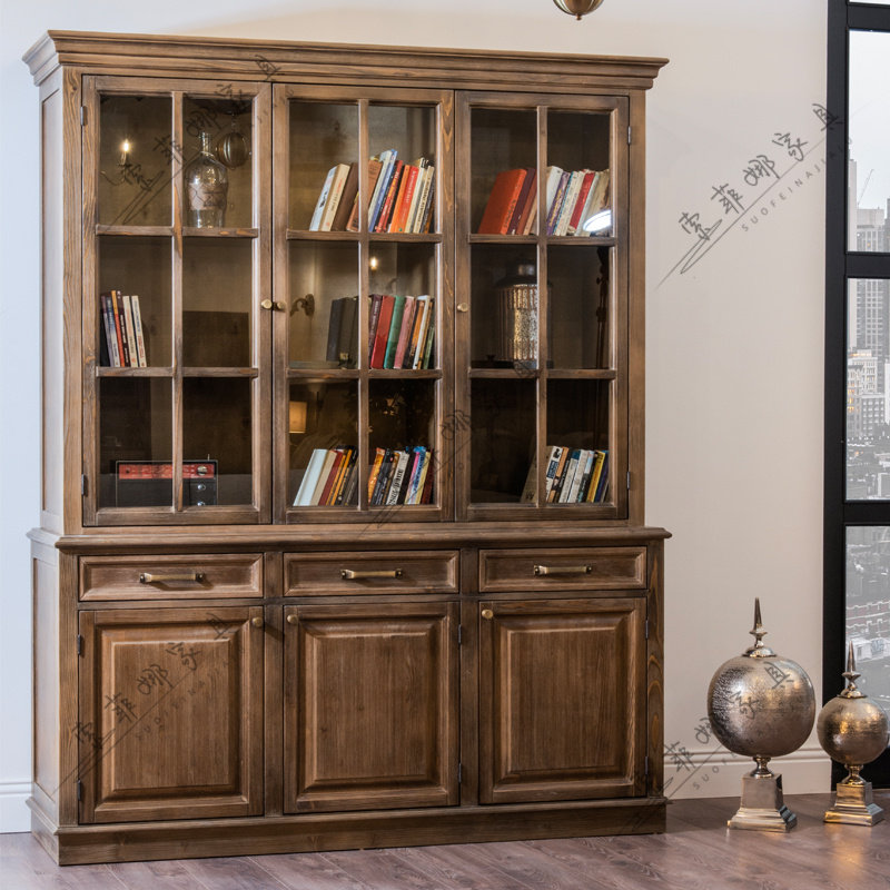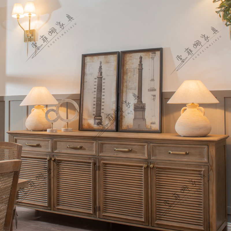 美式实木做旧餐桌椅复古乡村餐边柜储物柜酒柜书柜餐厅成套家具
