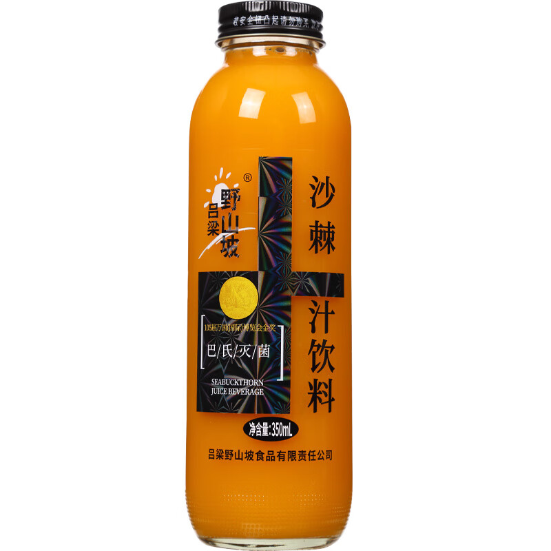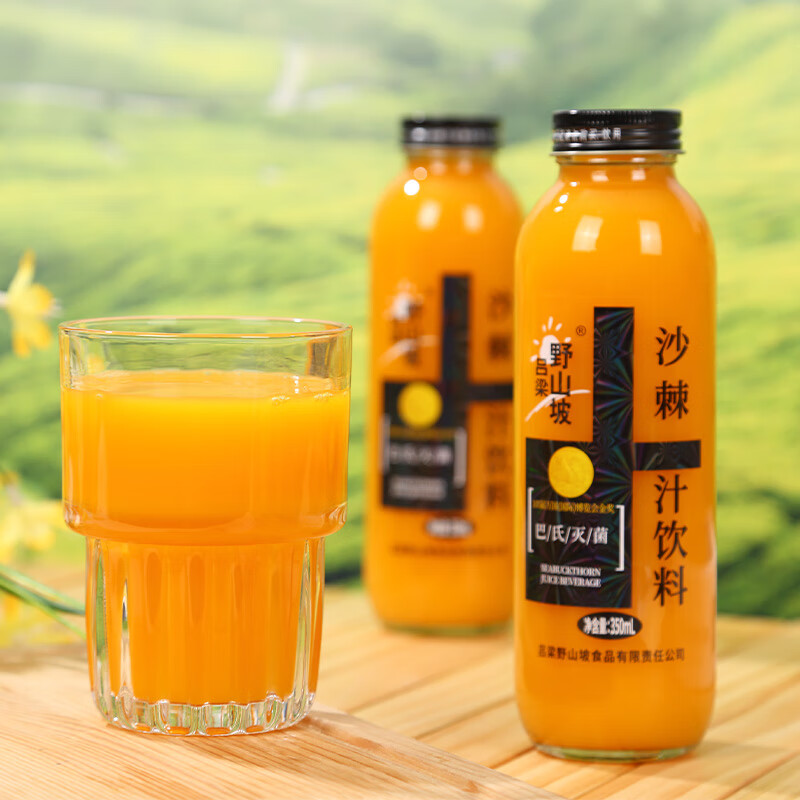 吕梁野山坡生榨沙棘汁350ml*8瓶装玻璃瓶果汁饮料山西特产整箱