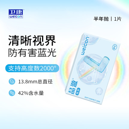 卫康晶澈防蓝光高度数运动隐形眼镜半年抛1片透明水凝胶抗uv近视