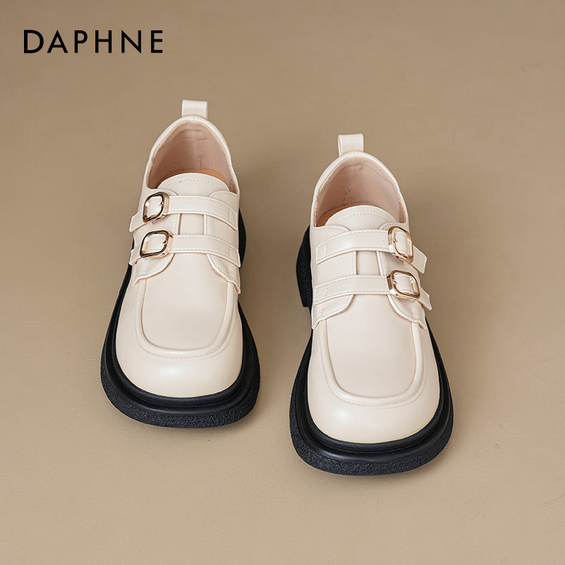 达芙妮白色乐福鞋女厚底