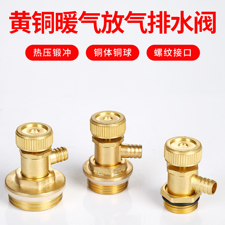 手拧全铜暖气片排气阀暖气排水放气阀4分6分1寸纯铜阀门放水神器
