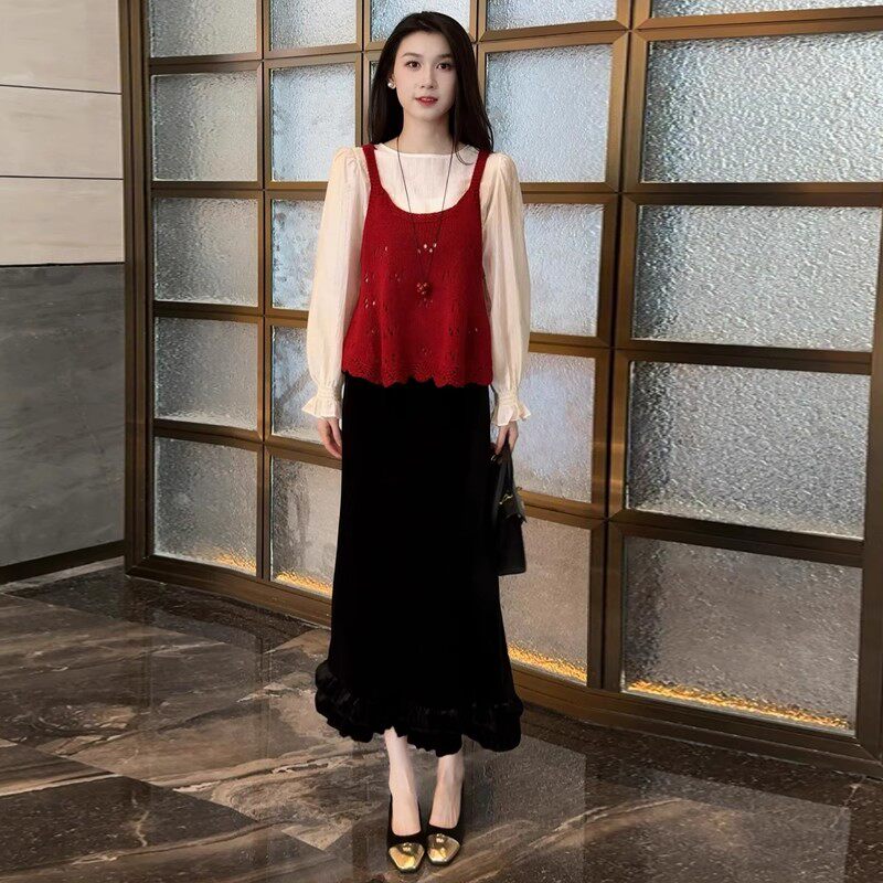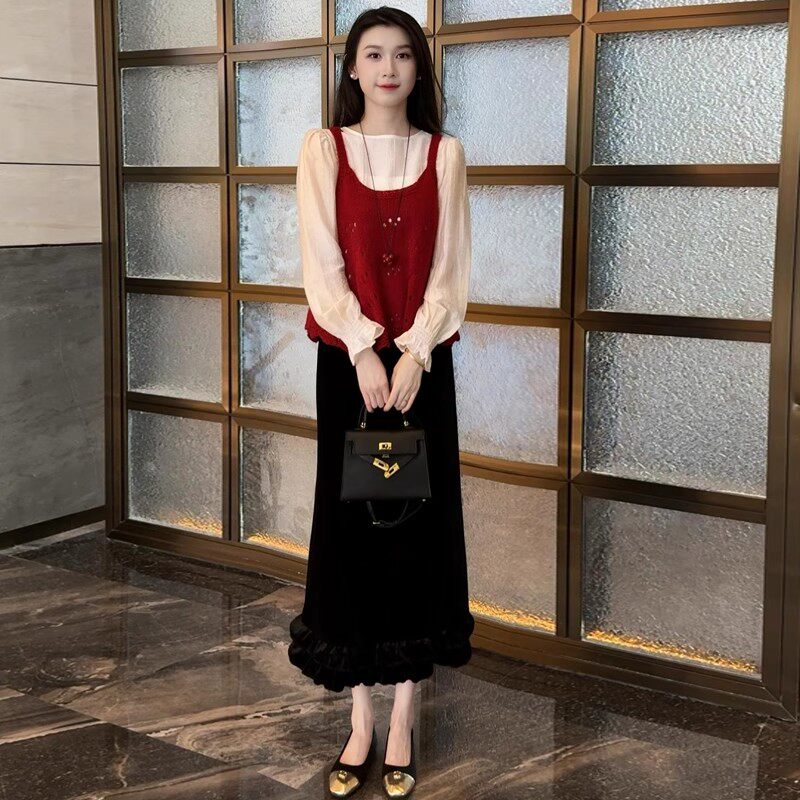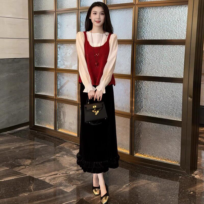 春秋高级感套装裙女士2026新款法式时尚气质衬衫马甲半身裙三件套