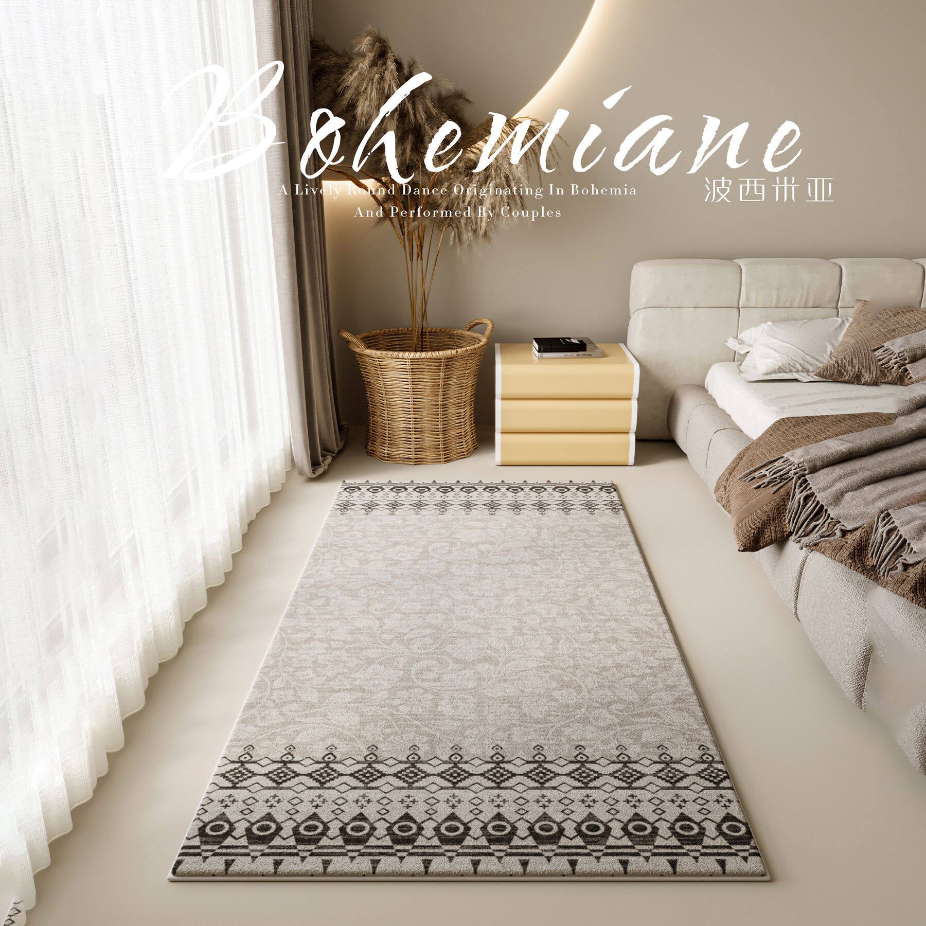 亚马逊可折叠地毯水洗波西米亚风床边毯机洗式欧美区域垫