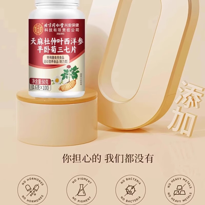 北京同仁堂天麻杜仲叶三七片中老年血管不堵塞清血管正品