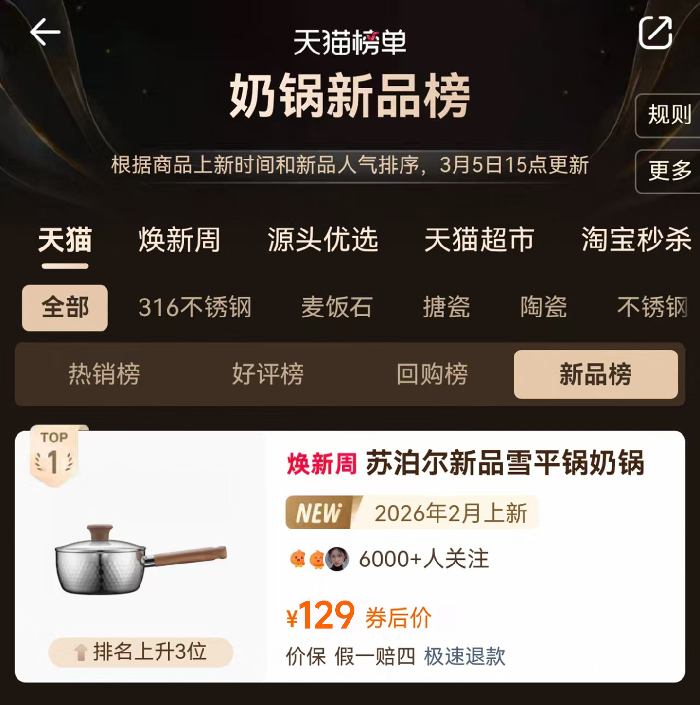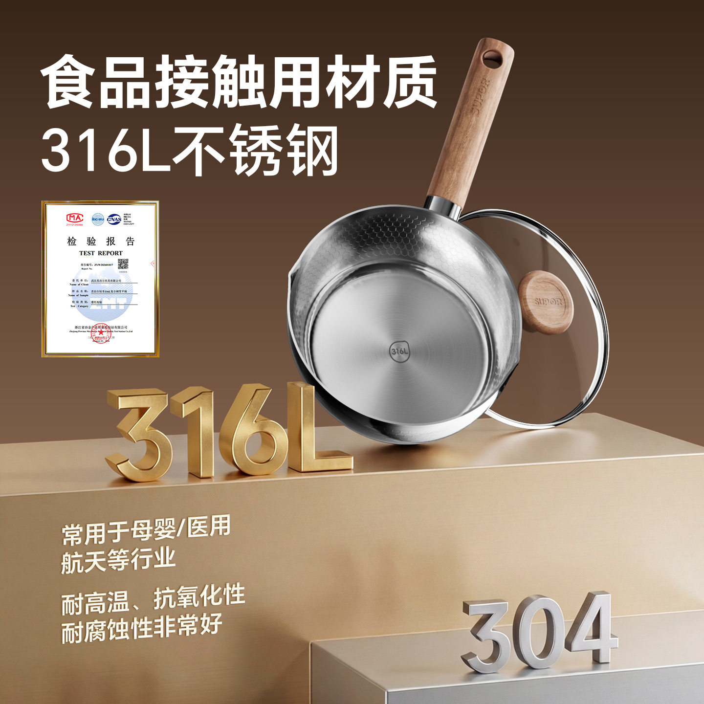 【新品】苏泊尔雪平锅316L加厚不锈钢小奶锅宝宝辅食锅汤锅泡面锅