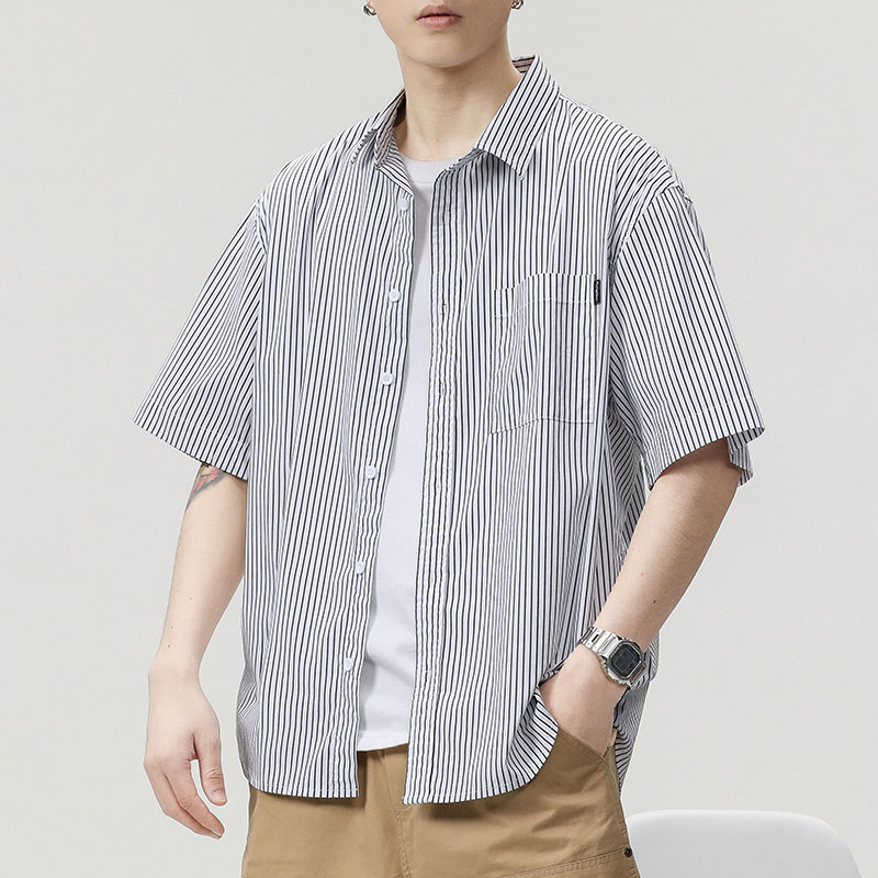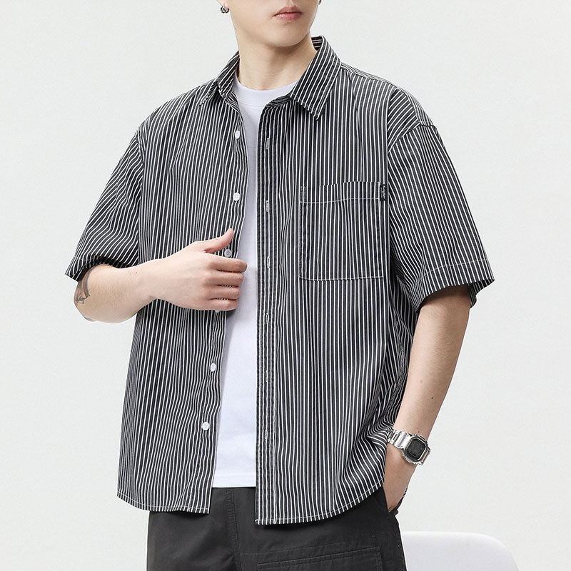 衣品天成Eptison短袖衬衫男女同款夏季新款潮牌工装宽松休闲条纹