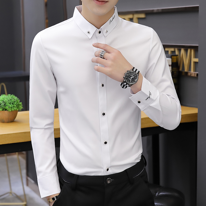春秋新款衬衫男士长袖韩版抗皱免烫黑色衬衣男装帅气修身弹力寸衫