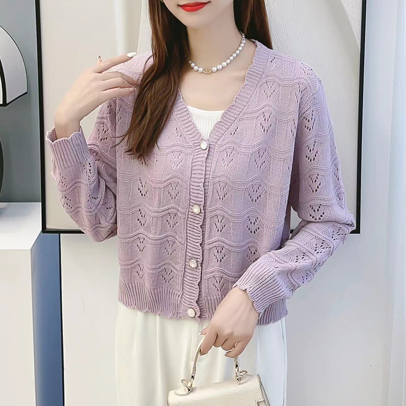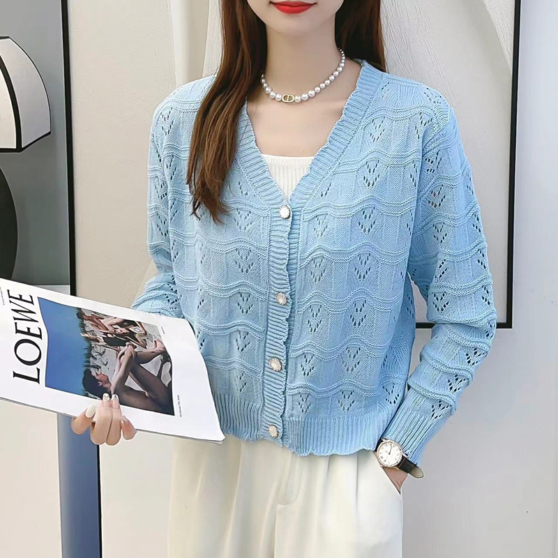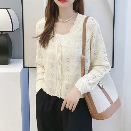 女士镂空薄款针织衫开衫女2025春秋新款韩版小清新长袖外搭短外套