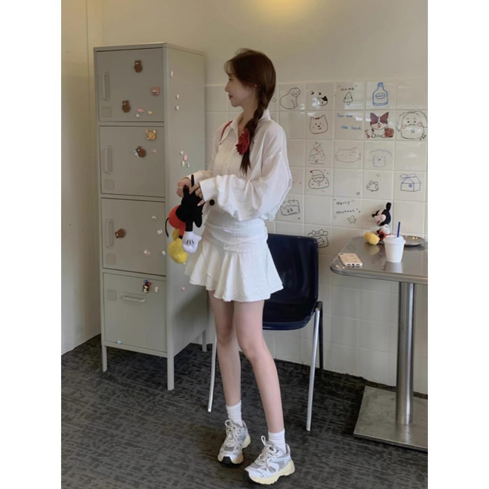 法式独特别致白色长袖衬衫连衣裙子早秋季女装2024新款夏季小短裙