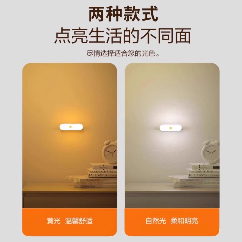 智能无线充电人体感应小夜灯免布线家用夜间过道衣柜橱柜LED灯条