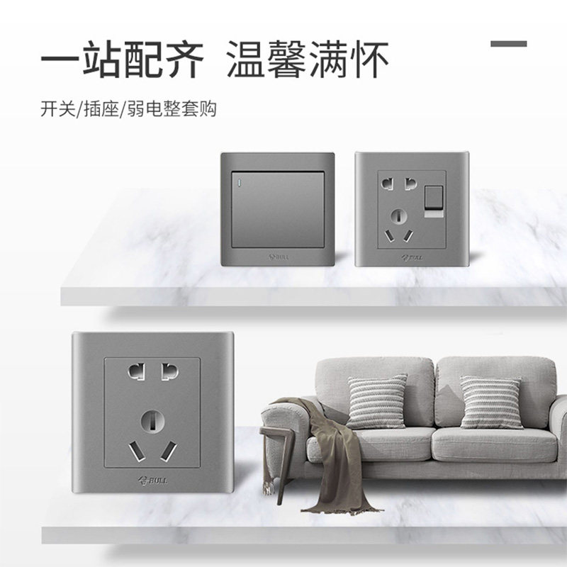 G32公牛开关插座面板一开五孔二三插暗多孔家用墙壁星空灰色暗装