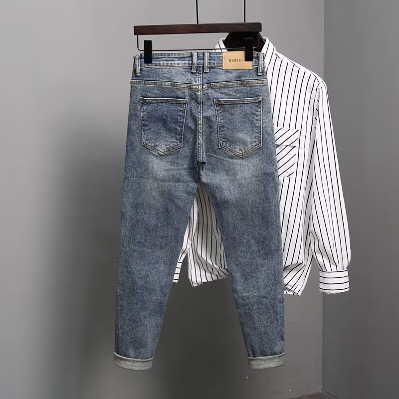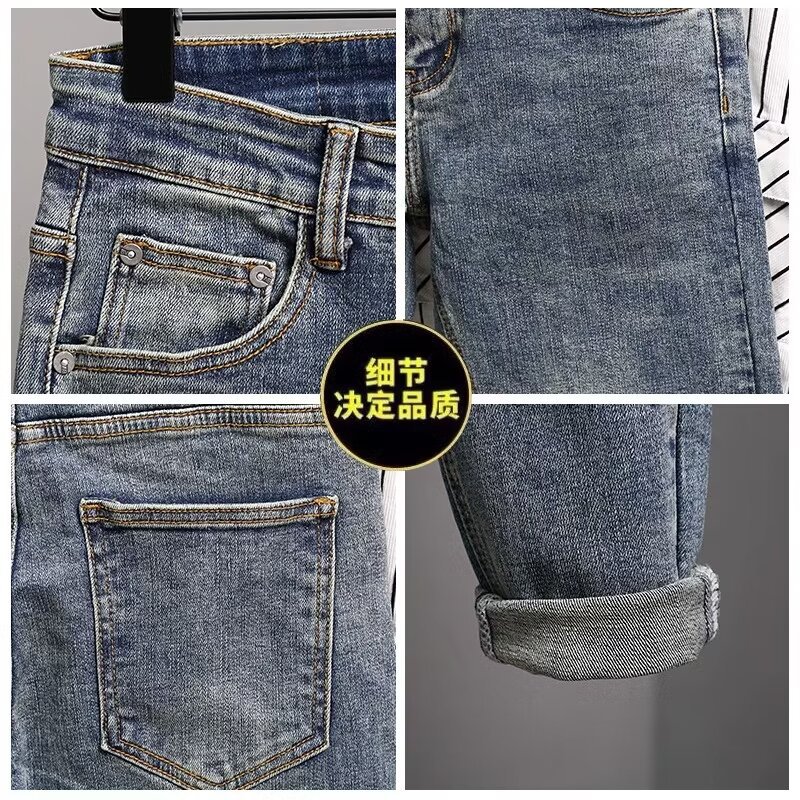 男士九分牛仔裤2024春秋季新款潮牌修身小脚美式夏季薄款复古