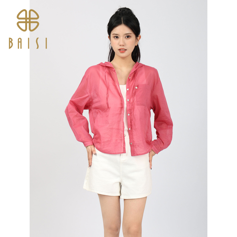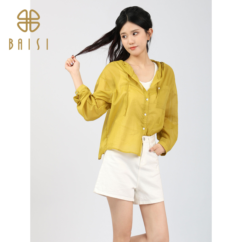 百丝BCVOGA时尚百搭连帽防晒衬衣2024夏季新品休闲设计款外套女