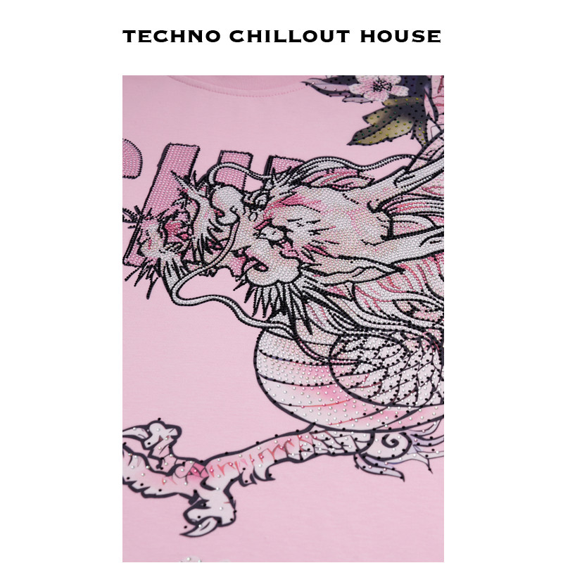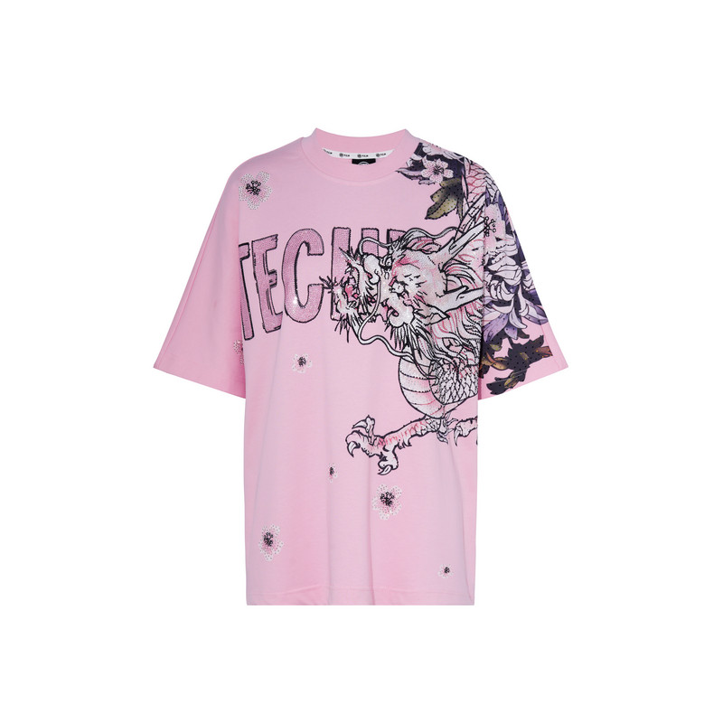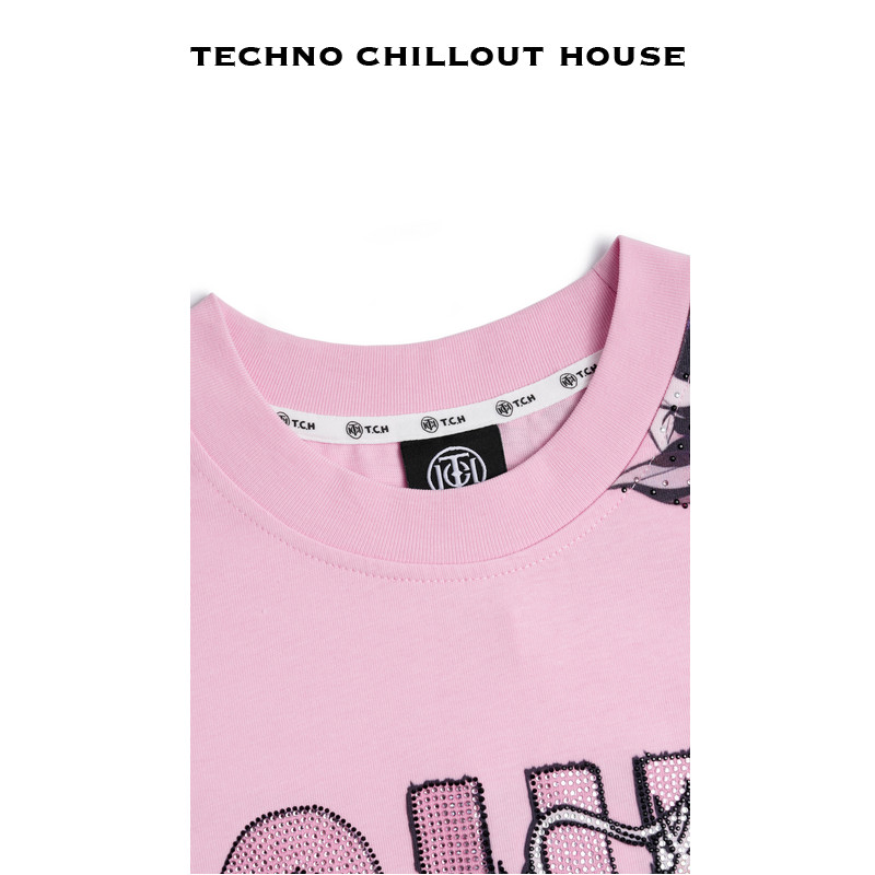 TCH轻奢潮牌烫钻时尚街头休闲宽松粉色短袖T恤女夏T75B10E6006