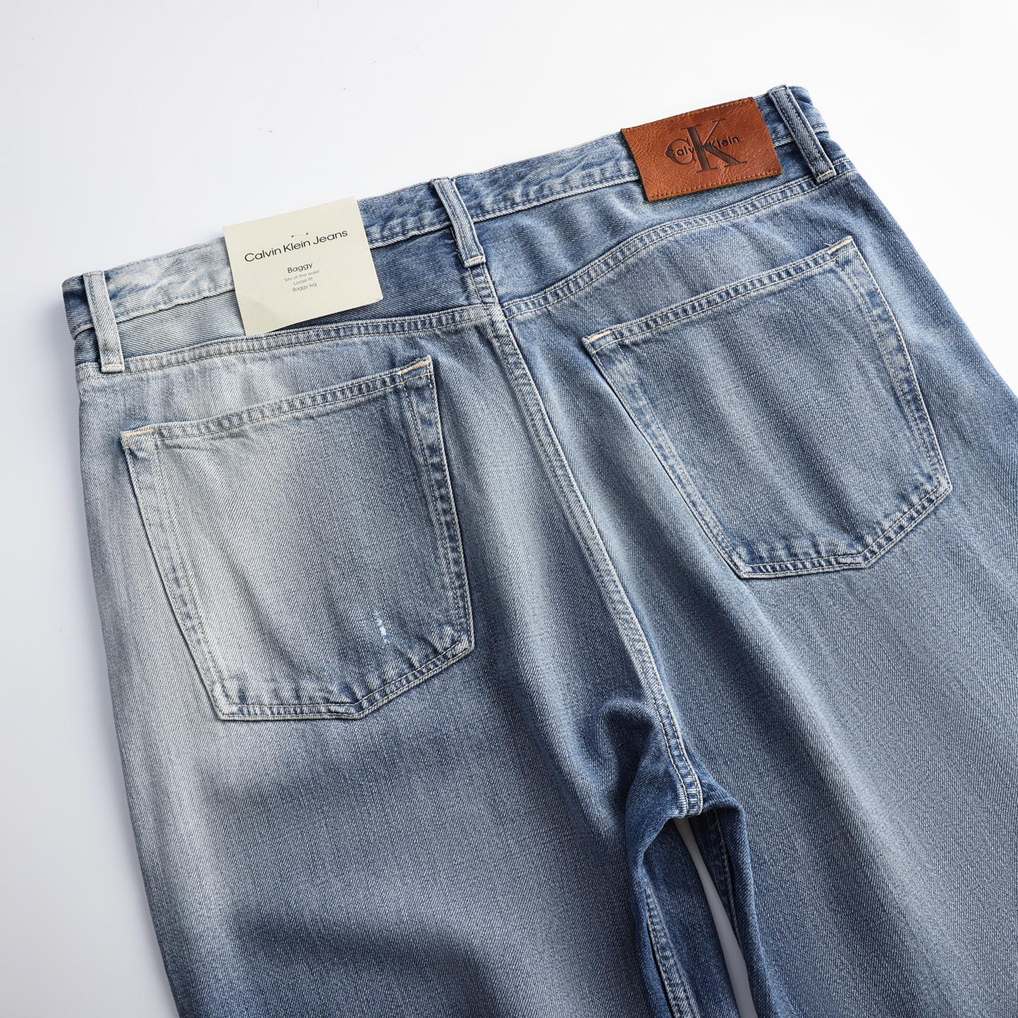新品 Calvin Klein莱赛尔中腰超宽松薄牛仔裤男美式复古做旧长裤