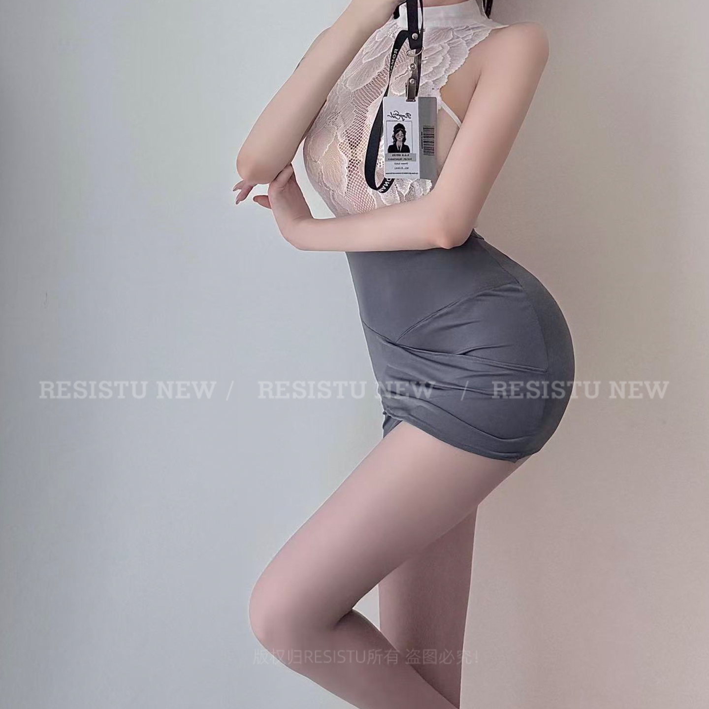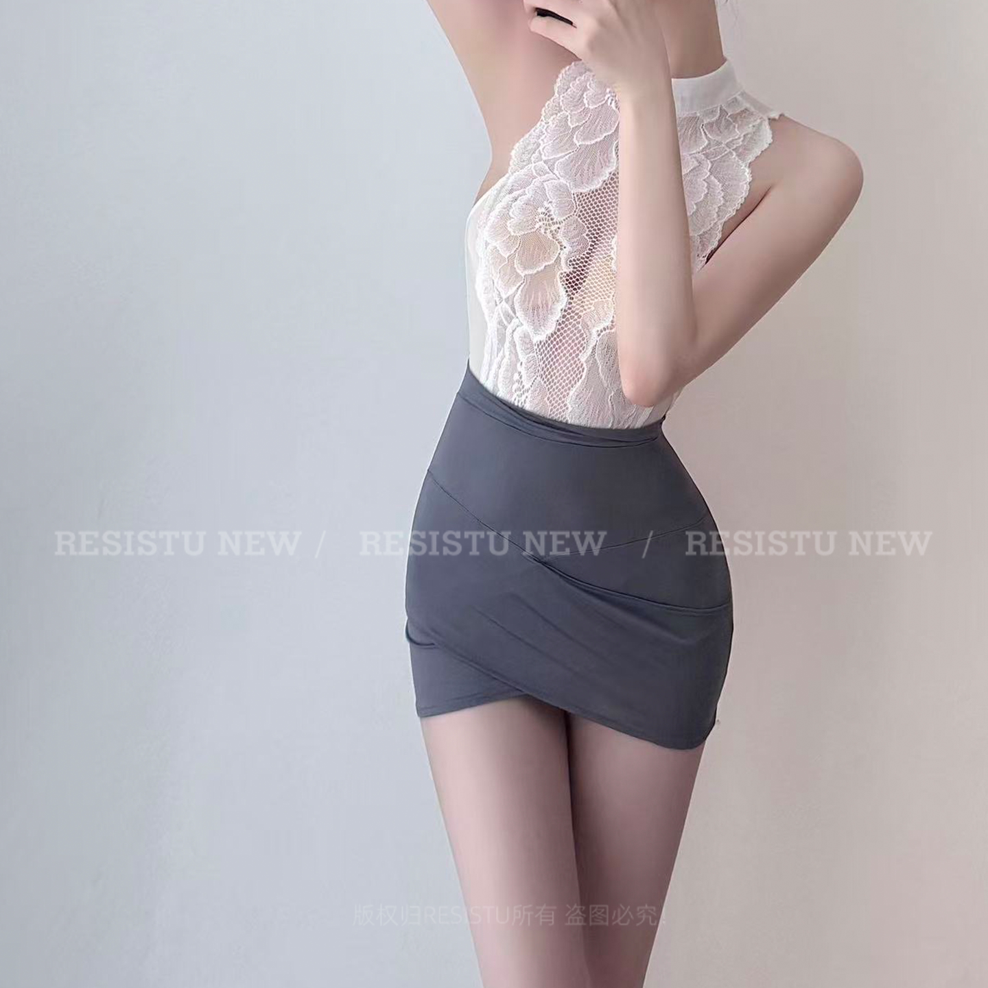 RESISTU性感OL蕾丝挂脖包臀裙