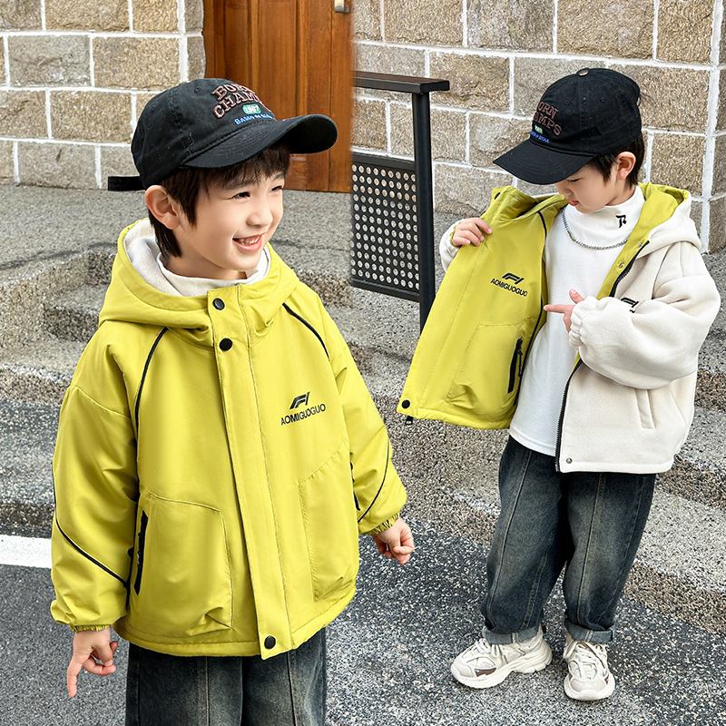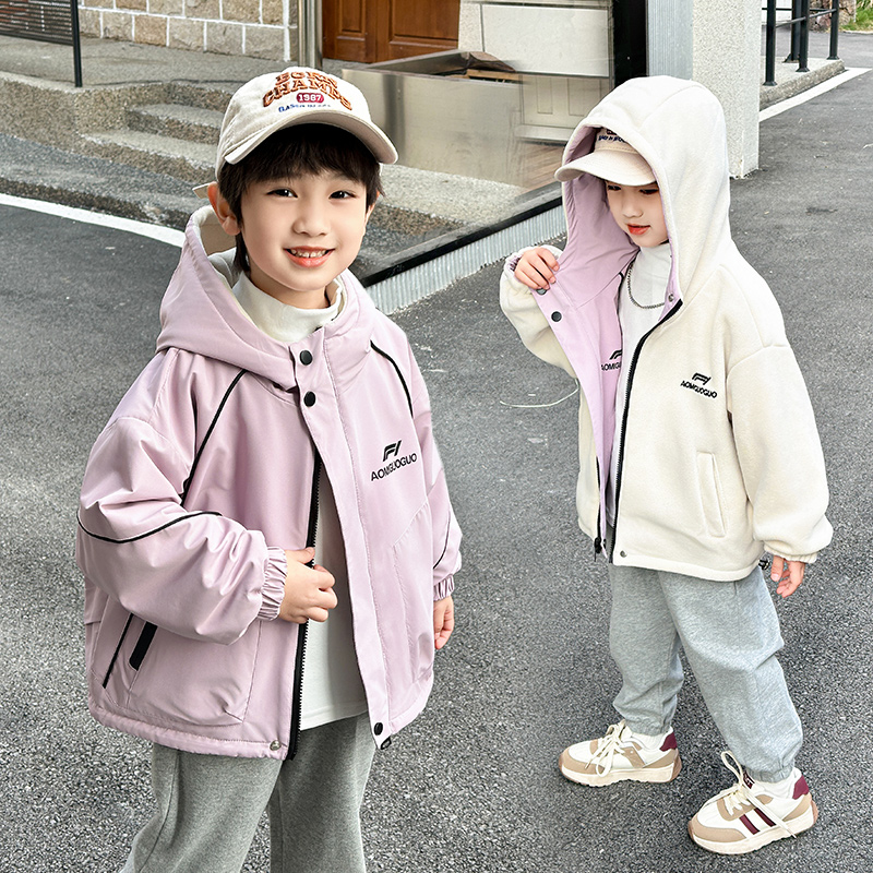 男童外套春秋款2025新款两面穿女童洋气帅气男孩加绒儿童冲锋衣潮