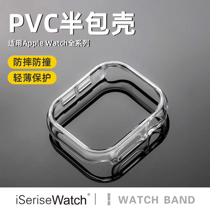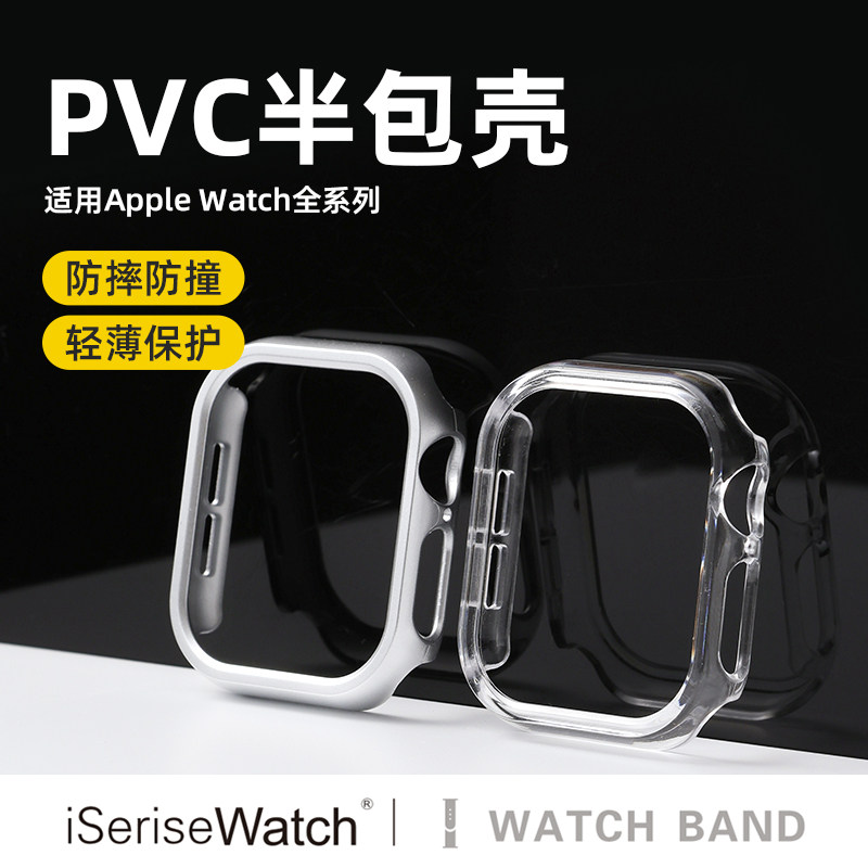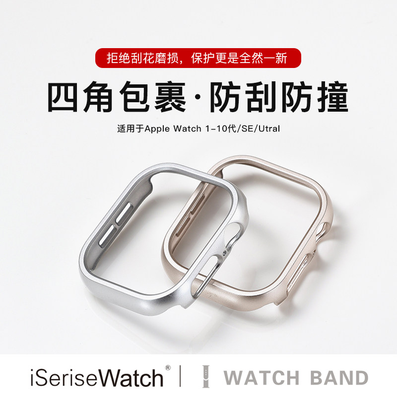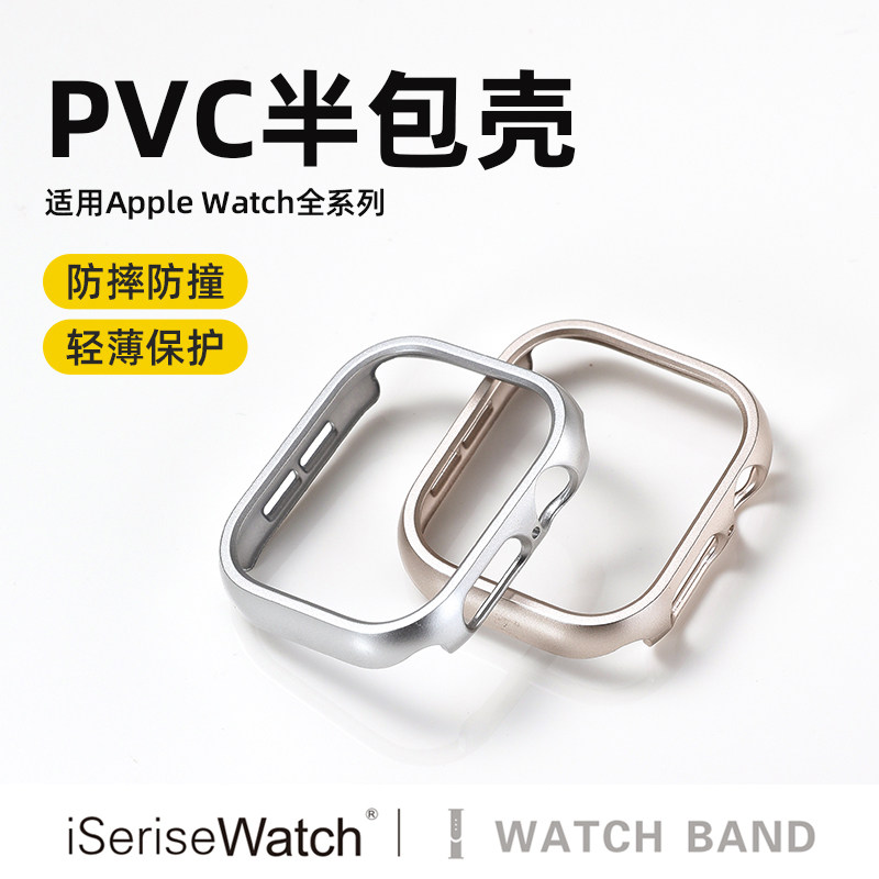 iserisewatch适用iWatch11保护壳苹果手表s10半包硬壳applewatchs9/8/7/6/5防摔电镀40/41/42/44/45mm表带pvc