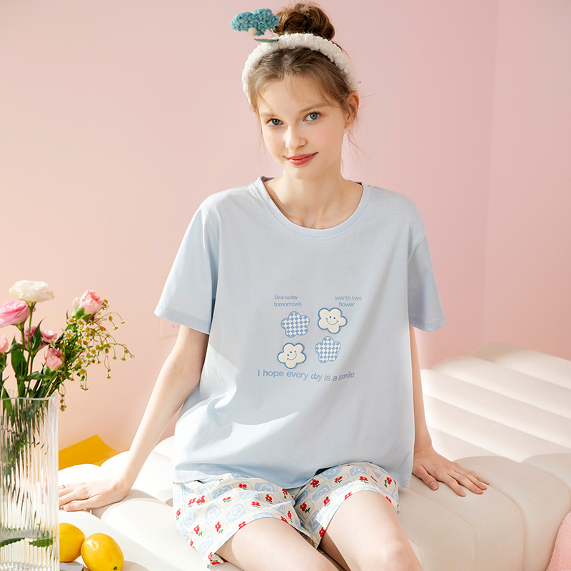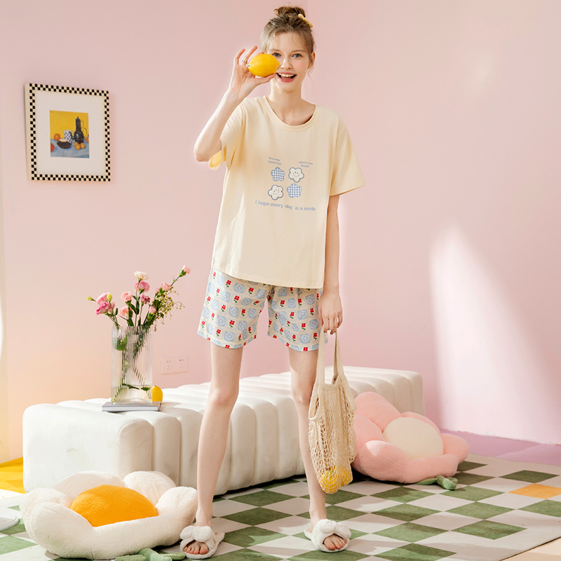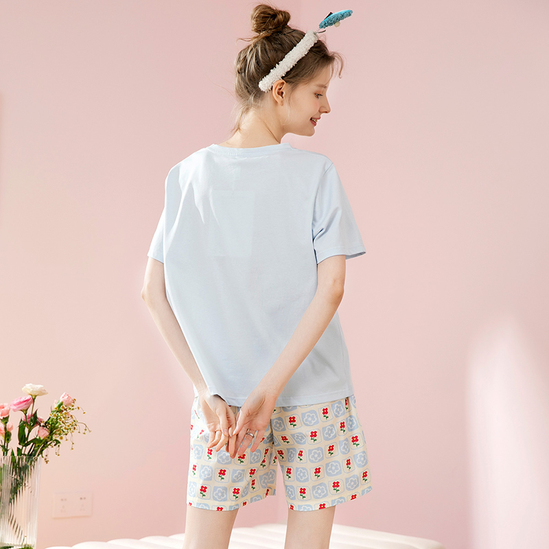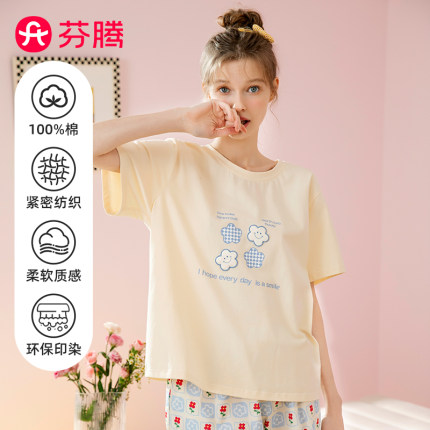 芬腾夏季新款纯棉短袖短裤家居服套装女款休闲睡衣